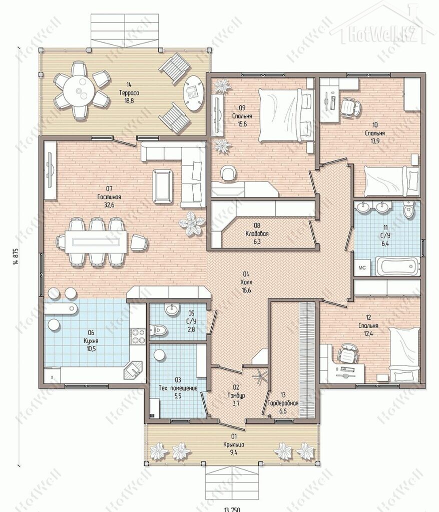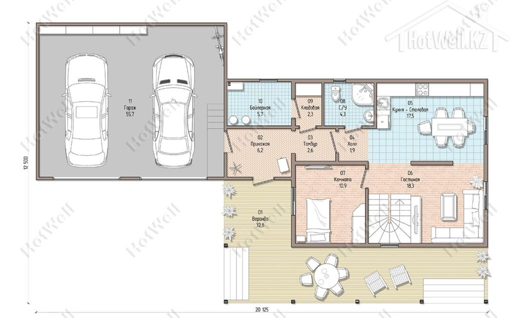 Строительство дома проект Б-157 компанией HotWell.KZ под ключ за 2,5 мес.