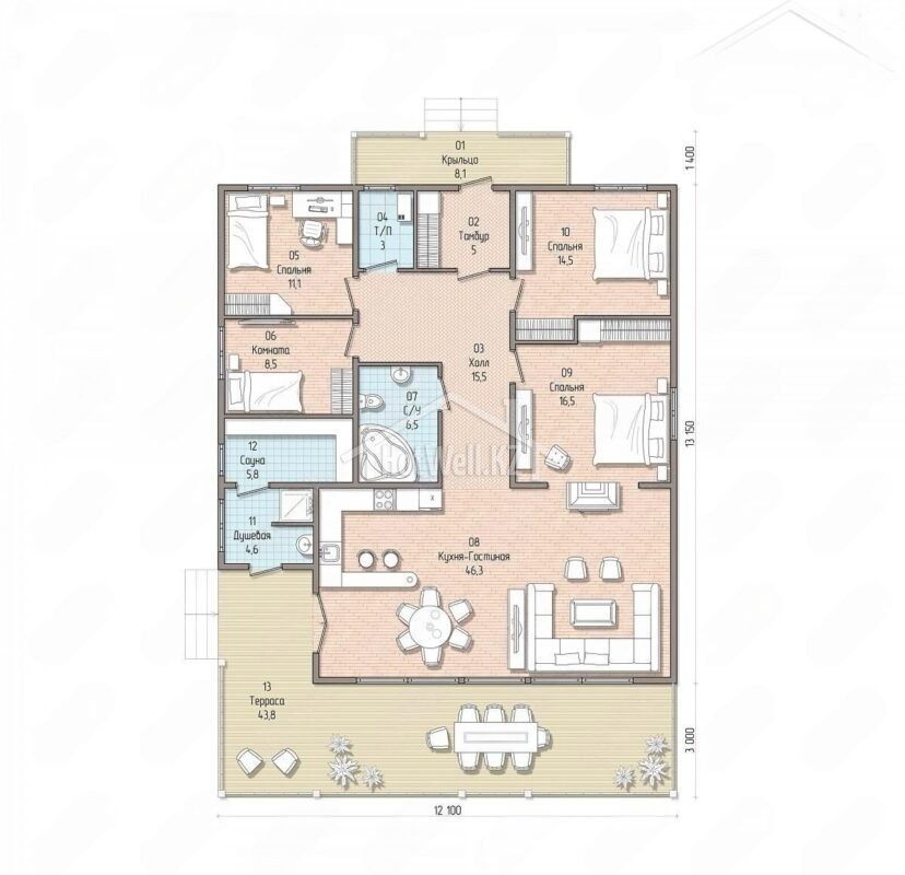 Cдан под ключ дом из СИП панелей проект Б-157 Алматы HotWell.kz
