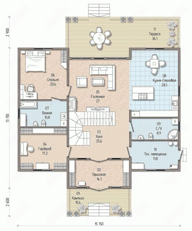 Строительство дома проект Б-157 компанией HotWell.KZ под ключ за 2,5 мес.