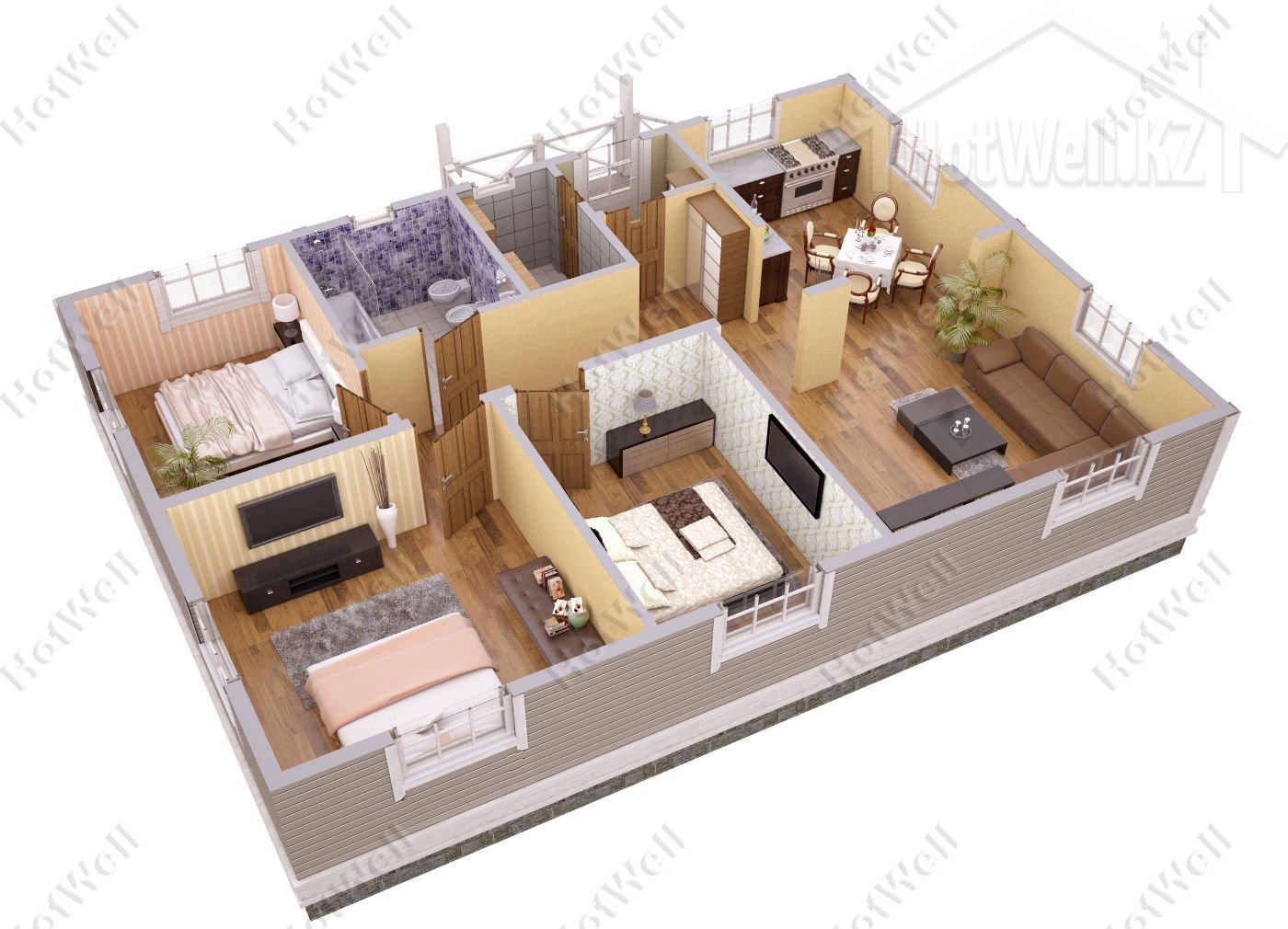 Внешние + внутренние несущие стены из СИП панелей Hotwell.KZ 158 мм (OSB-3 Толщина 9 мм, Пенополистирол ПСБ-С-20Ф)