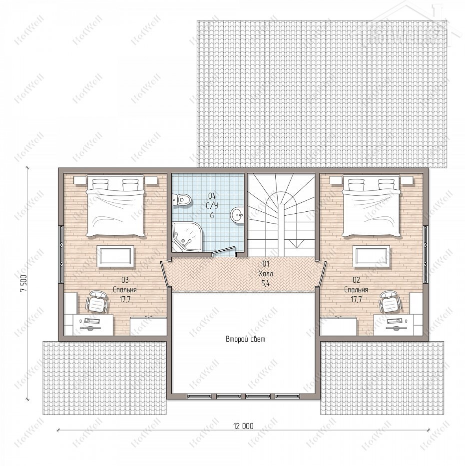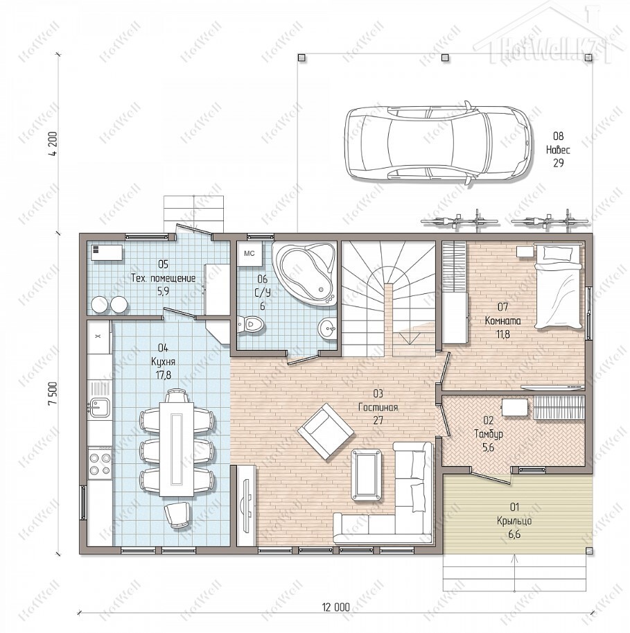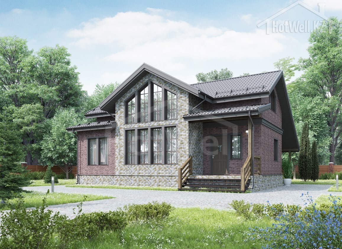 Дом с мансардой 12 на 12 метров, общей площадью 196 м2, из СИП панелей, с бойлерной, навесом, вторым светом и спальней на первом этаже