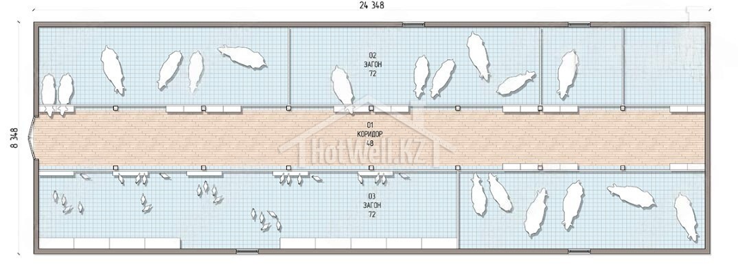 Одноэтажный хозблок 24 на 8 метров, общей площадью 203 м2, из СИП панелей.