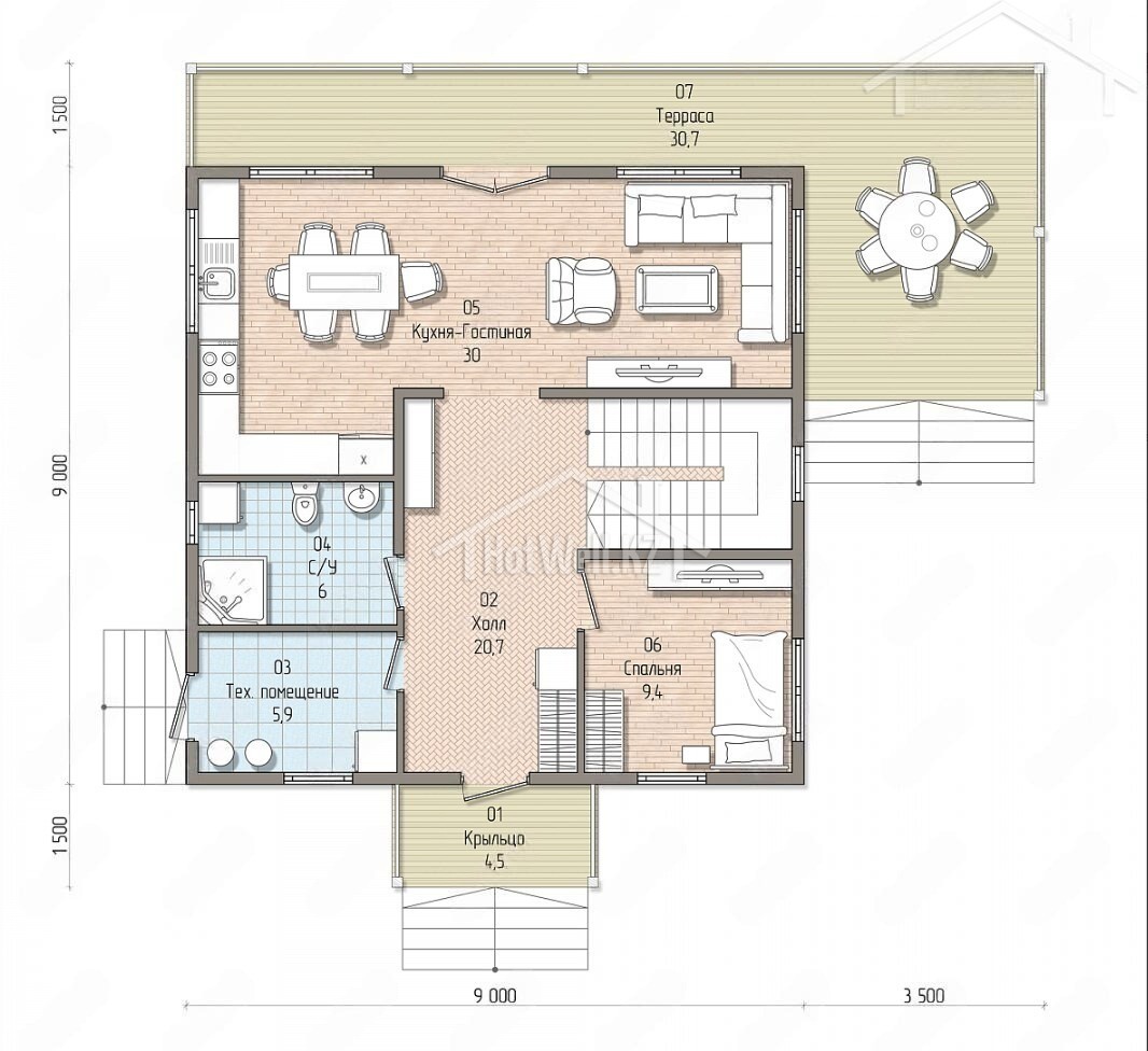 Внешние + внутренние несущие стены из СИП панелей Hotwell.KZ 158 мм (OSB-3 Толщина 9 мм, Пенополистирол ПСБ-С-20Ф)