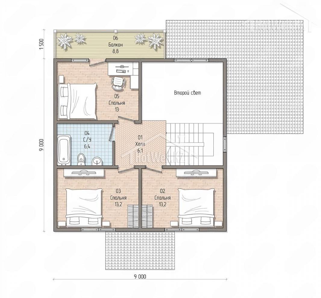 Дом с мансардой 13 на 12 метров, общей площадью 206 м2, из СИП панелей, с бойлерной, террасой, балконом, вторым светом и спальней на первом этаже