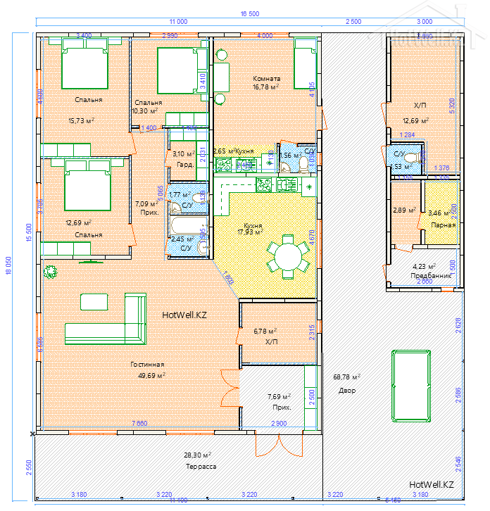 Внешние + внутренние несущие стены из СИП панелей Hotwell.KZ 158 мм (OSB-3 Толщина 9 мм, Пенополистирол ПСБ-С-20Ф)