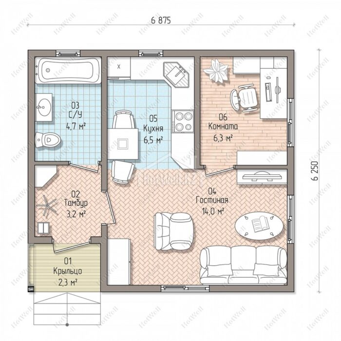 Проект дома «Б-43» 43кв.м