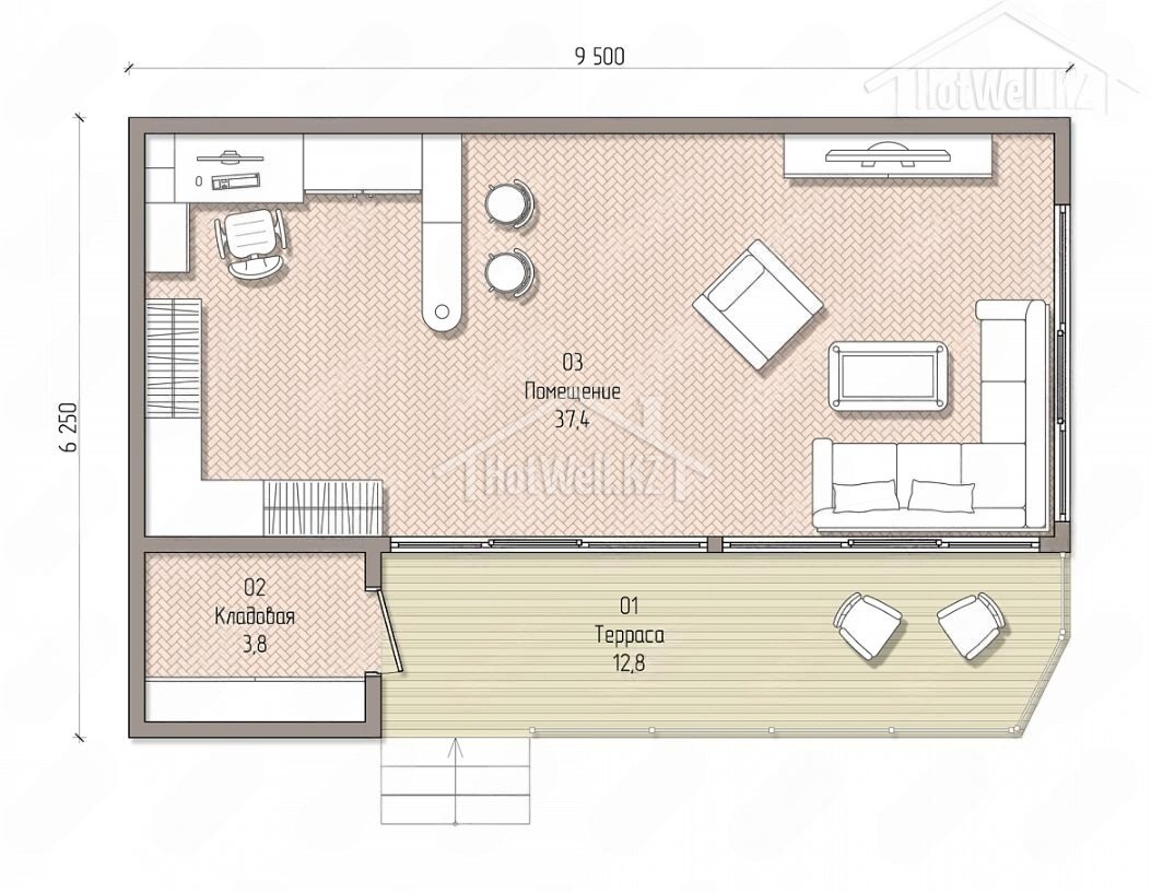 Проект дома на 59 м2 из СИП панелей с террасой.