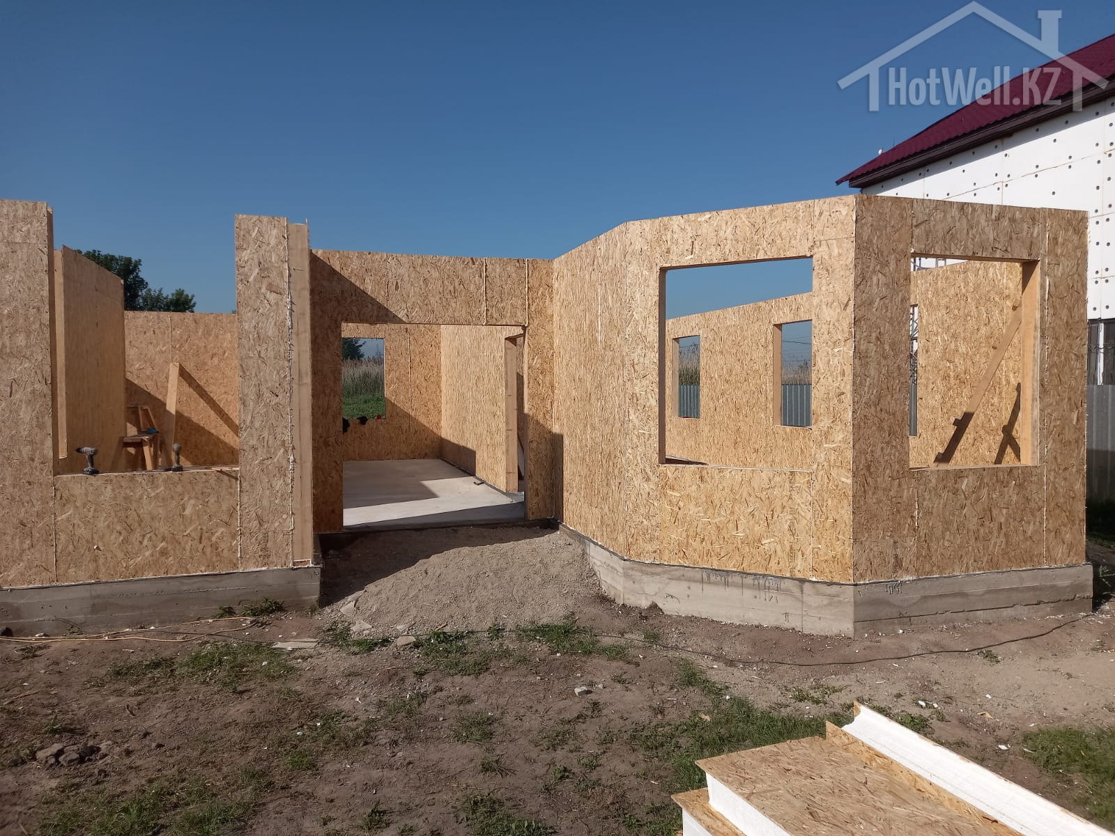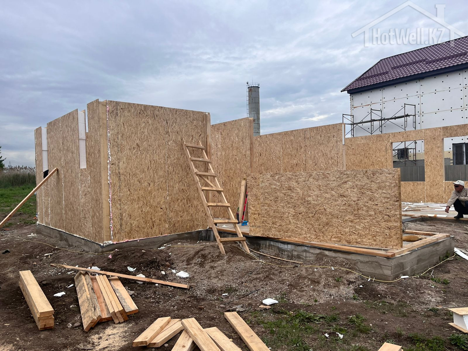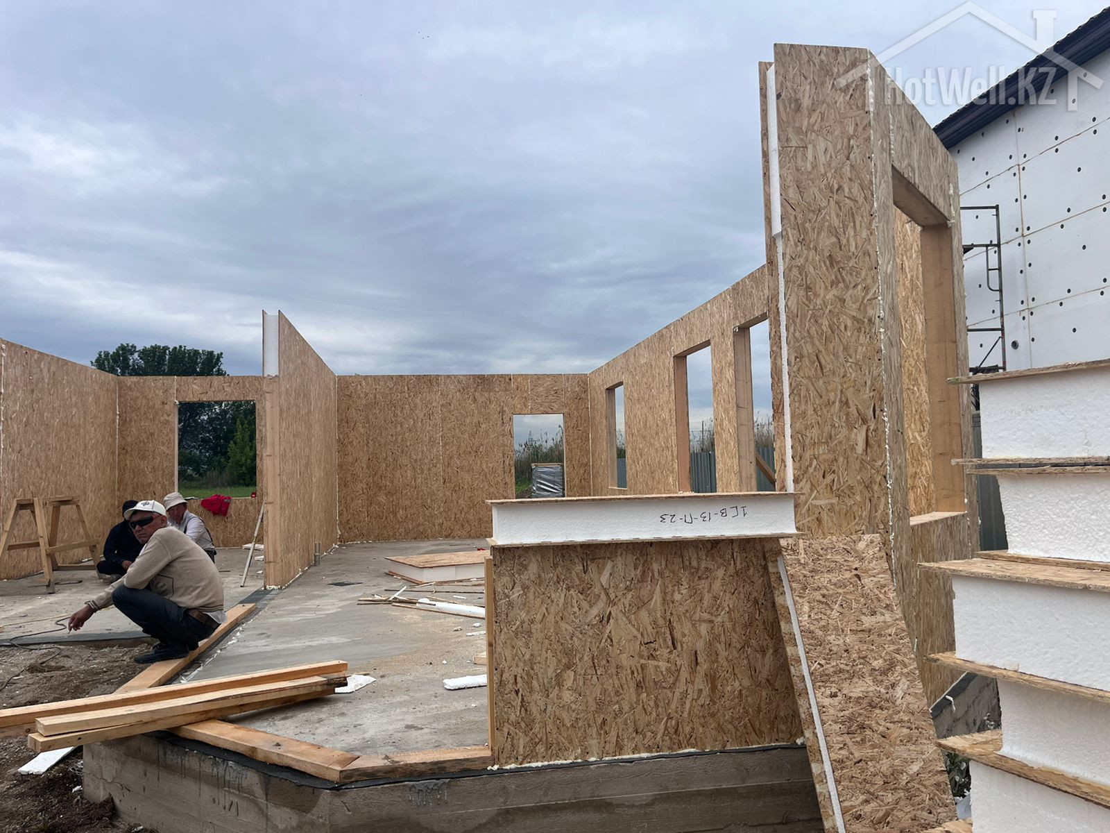 Внешние + внутренние несущие стены из СИП панелей Hotwell.KZ 158 мм (OSB-3 Толщина 9 мм, Пенополистирол ПСБ-С-20Ф)