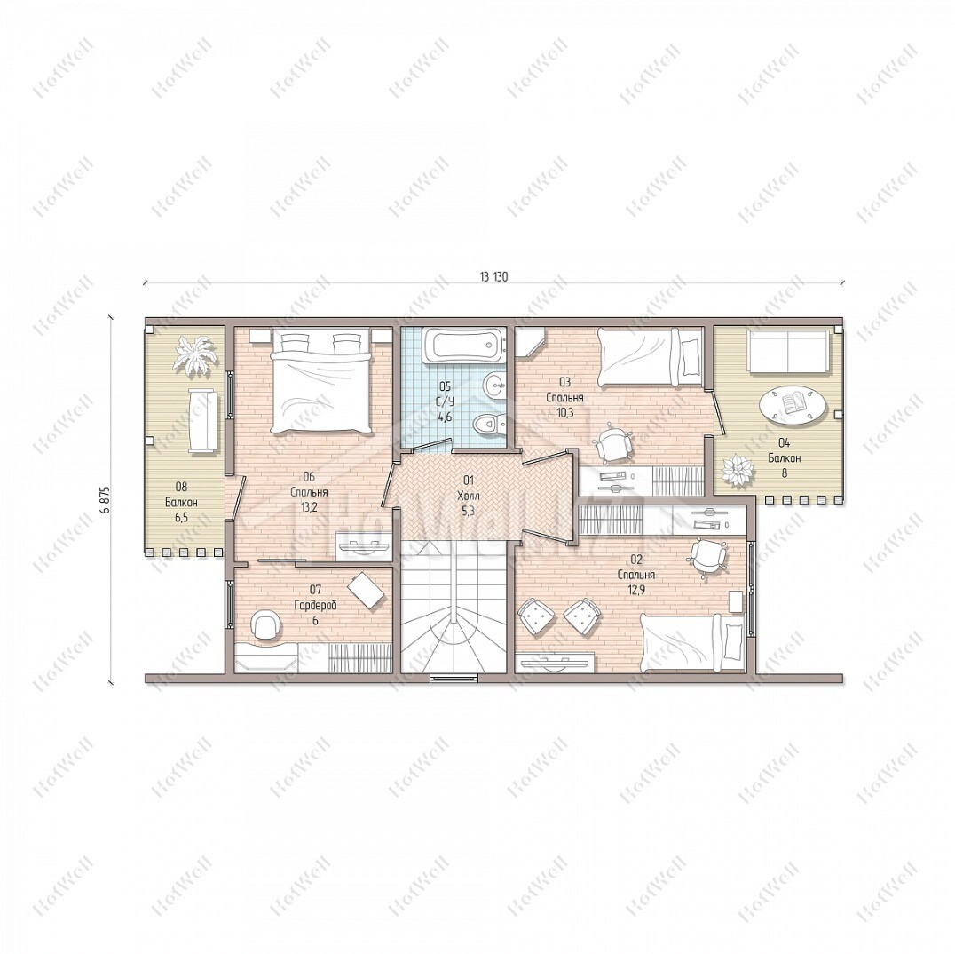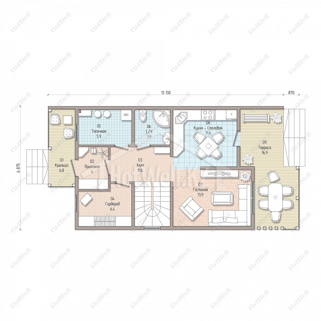 Внешние + внутренние несущие стены из СИП панелей Hotwell.KZ 158 мм (OSB-3 Толщина 9 мм, Пенополистирол ПСБ-С-20Ф)