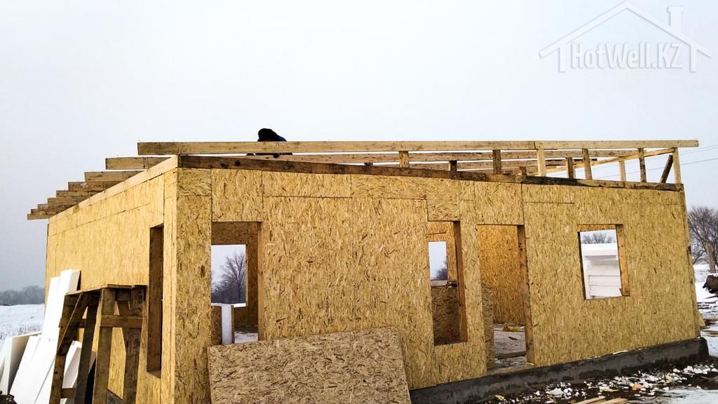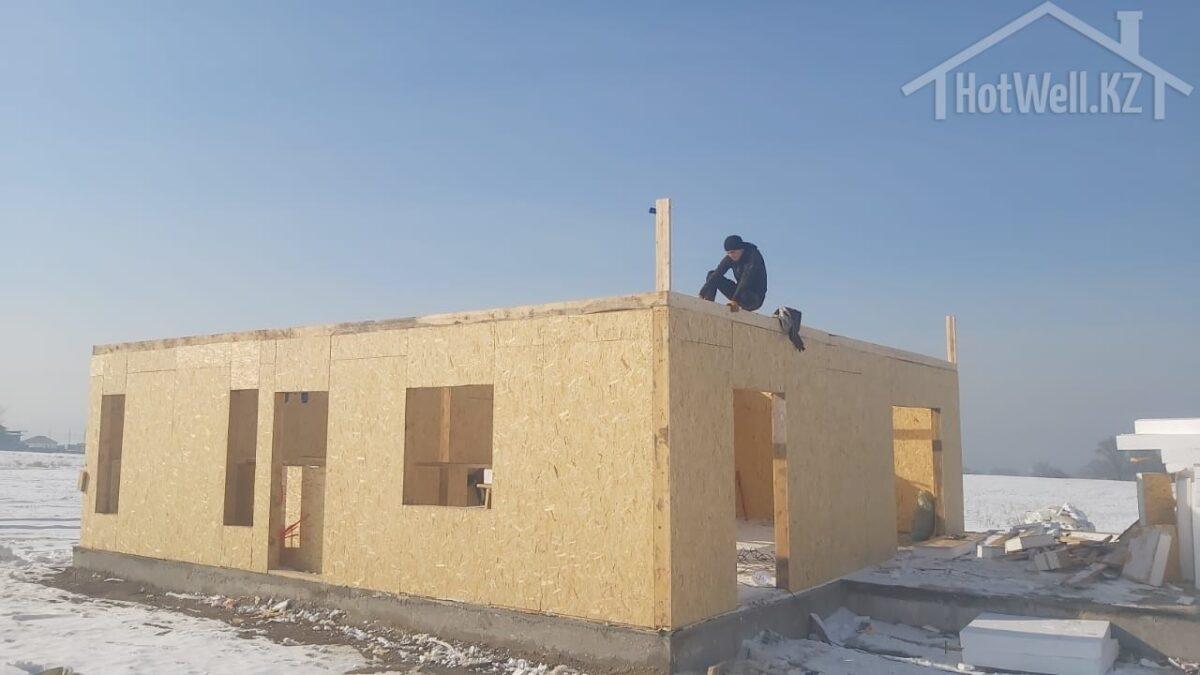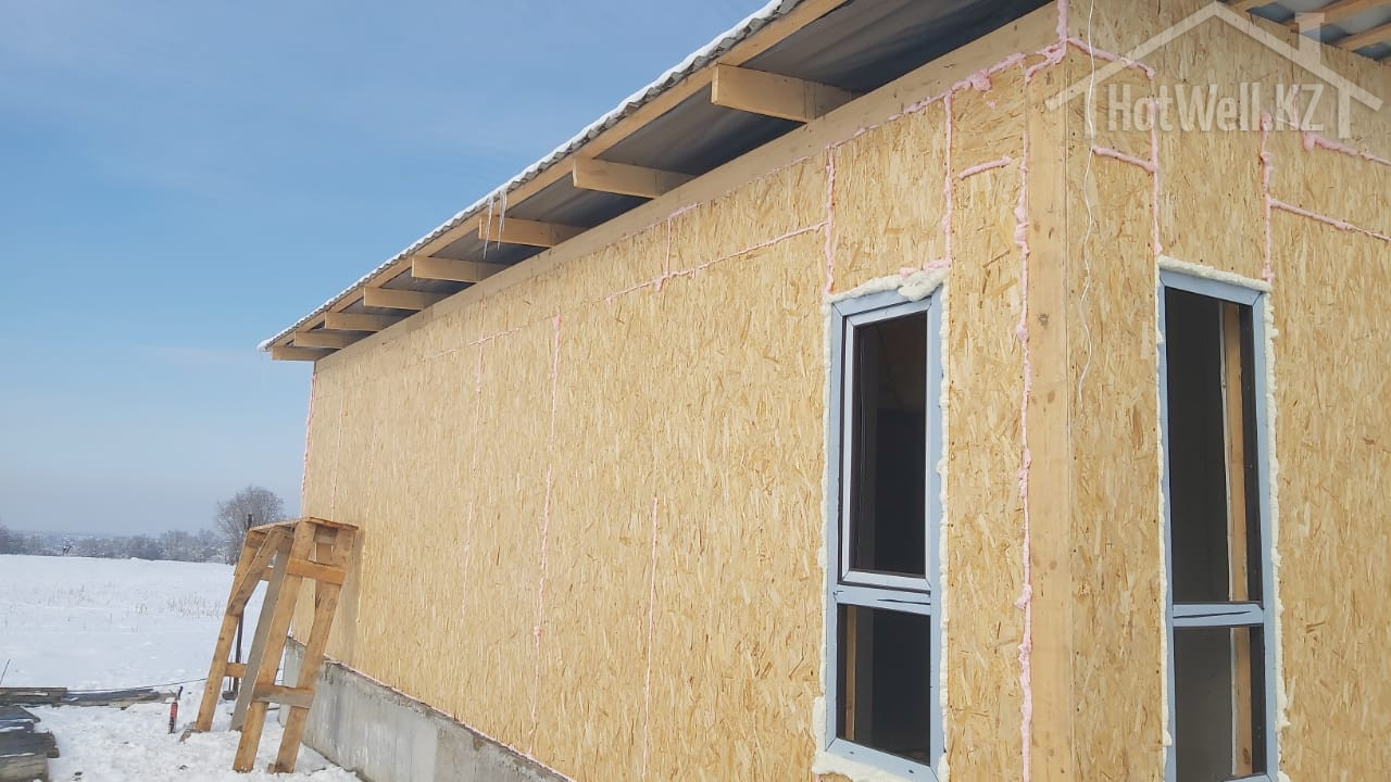 Внешние + внутренние несущие стены из СИП панелей Hotwell.KZ 158 мм (OSB-3 Толщина 9 мм, Пенополистирол ПСБ-С-20Ф)