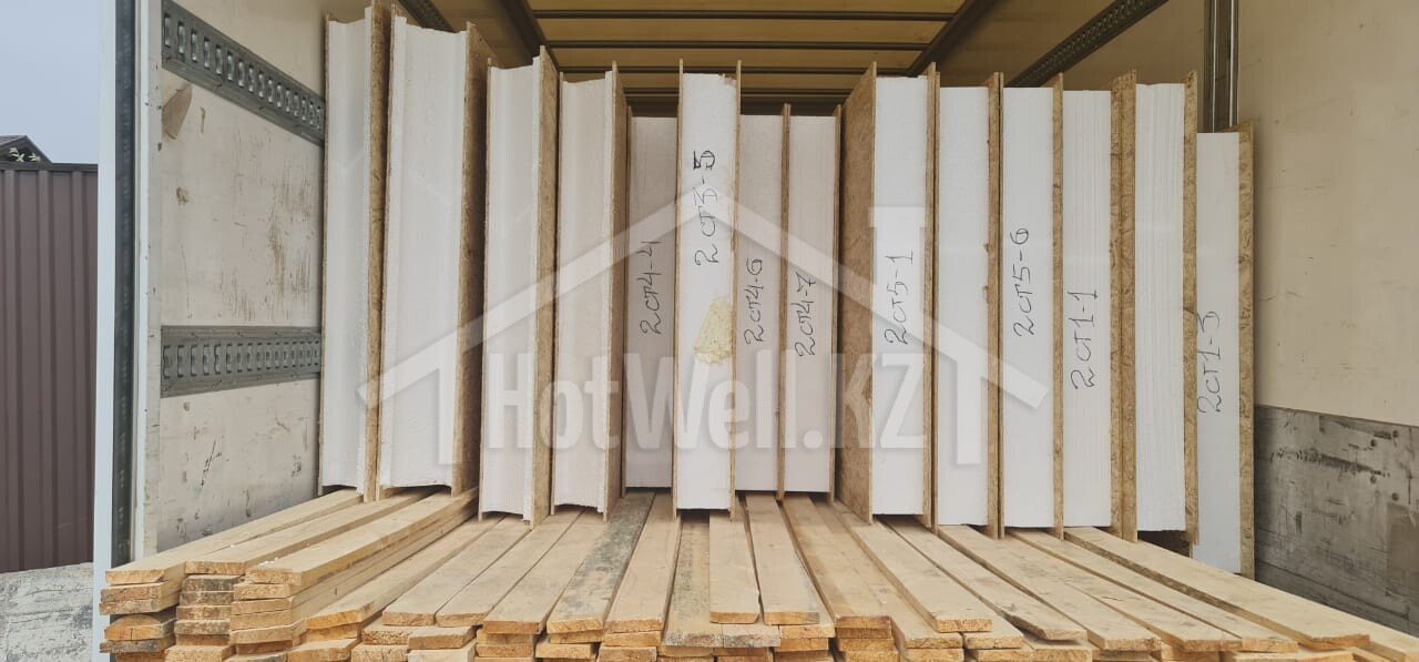 Внешние + внутренние несущие стены из СИП панелей Hotwell.KZ 158 мм (OSB-3 Толщина 9 мм, Пенополистирол ПСБ-С-20Ф)