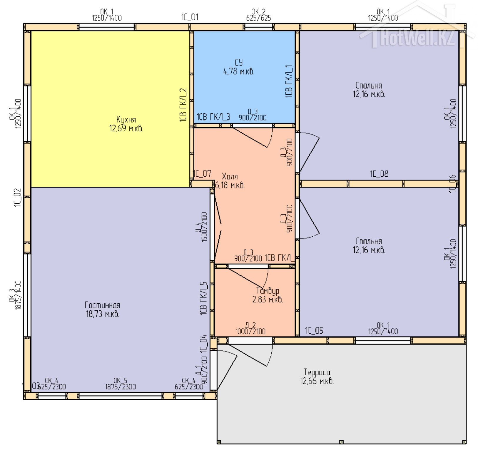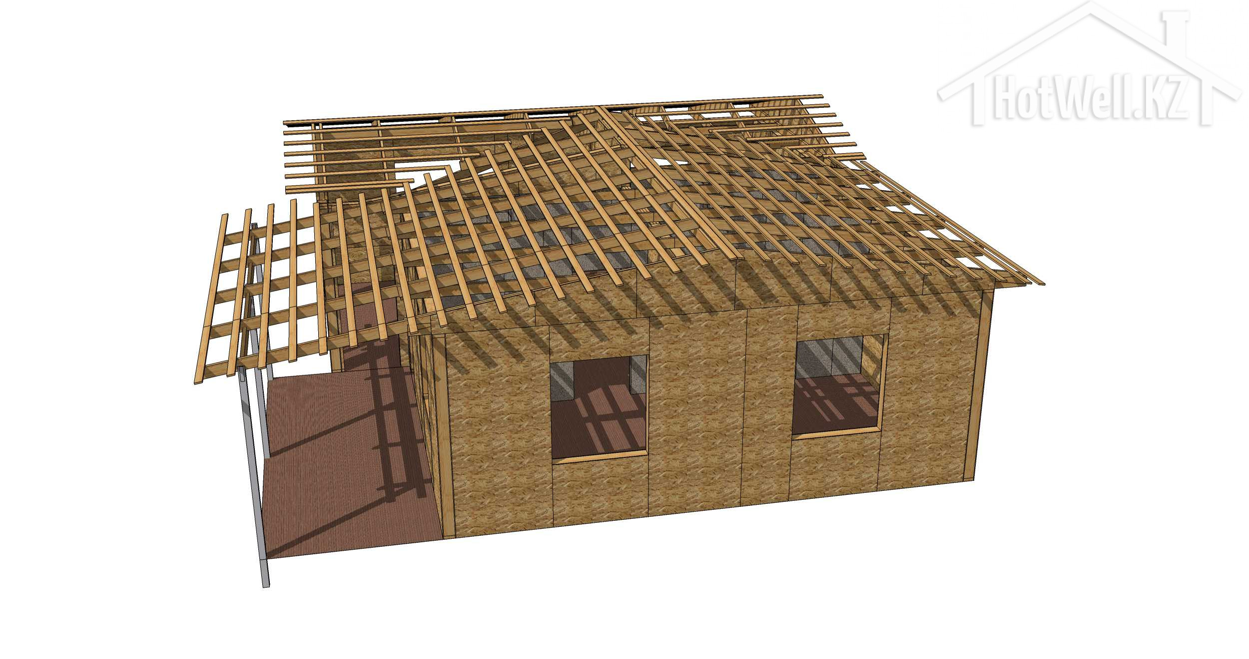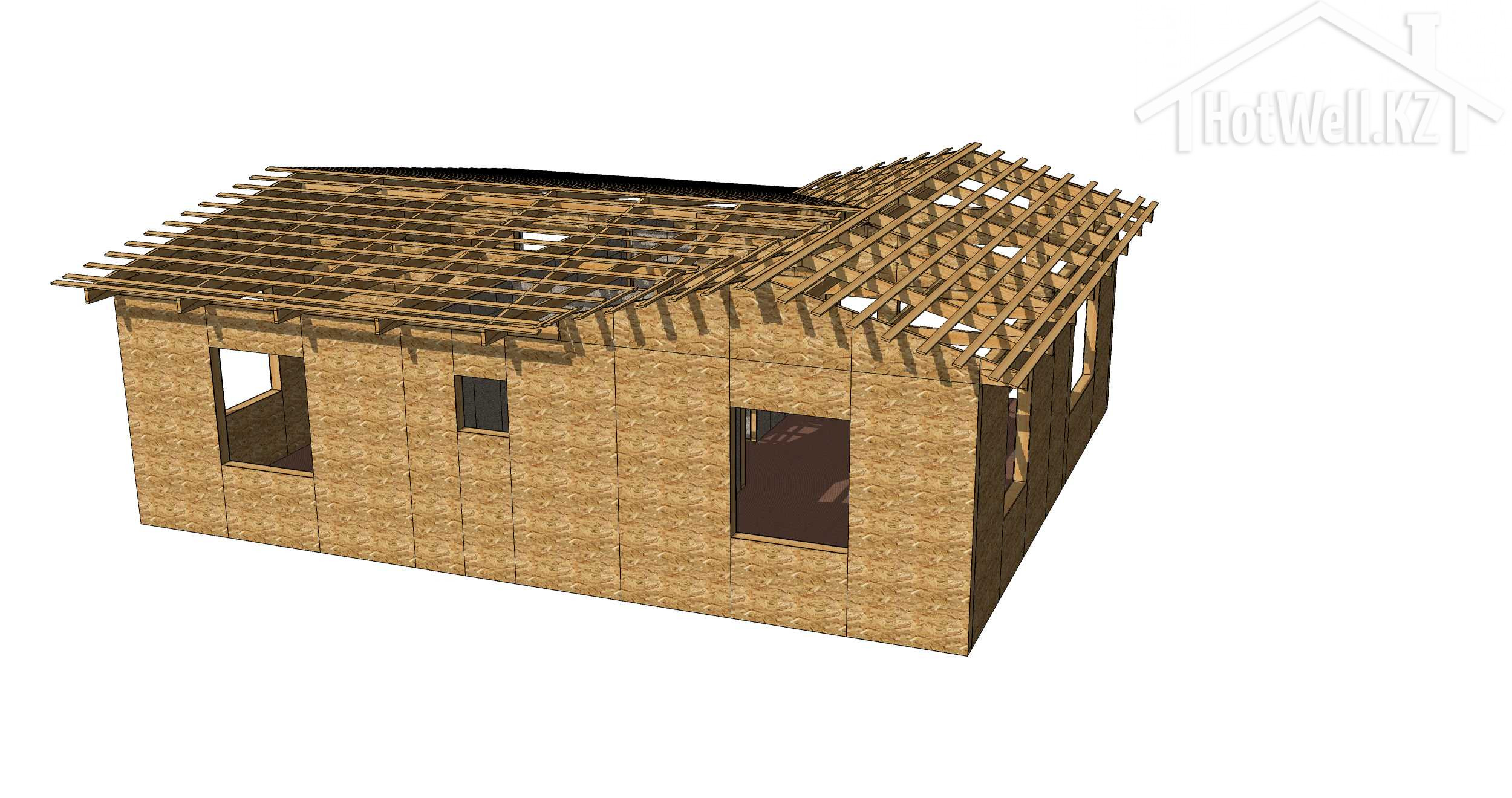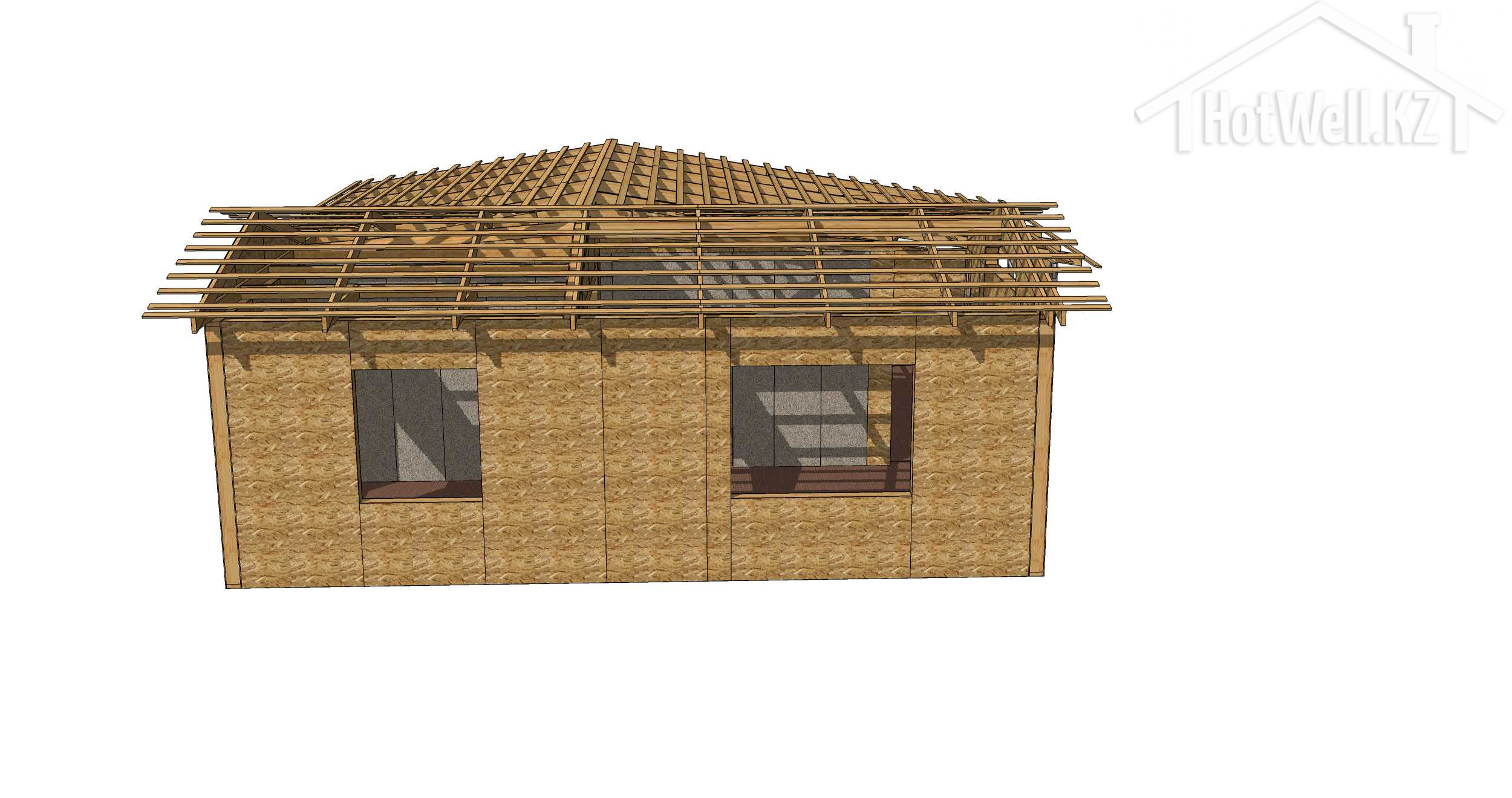 В комплект дома входит: Наружные стены из СИП панелей, инструкция (проект) для самостоятельной сборки, стропильная система крыши, обрешетка, межкомнатные перегородки + ГКЛ, шурупы, крепежные элементы. Фундамент заказчик заливает самостоятельно согластно проекта фундамента предоставленного от HotWell.KZ.