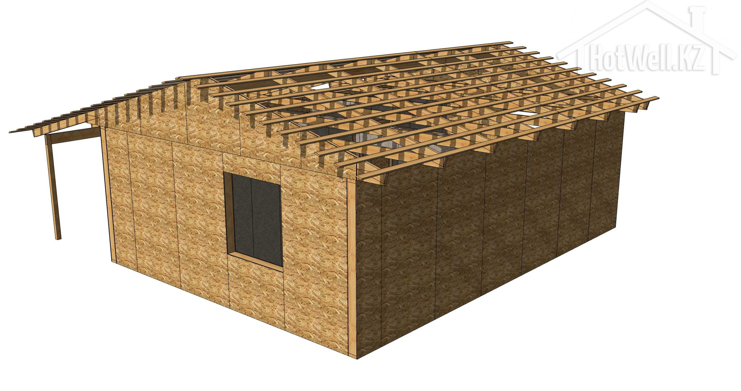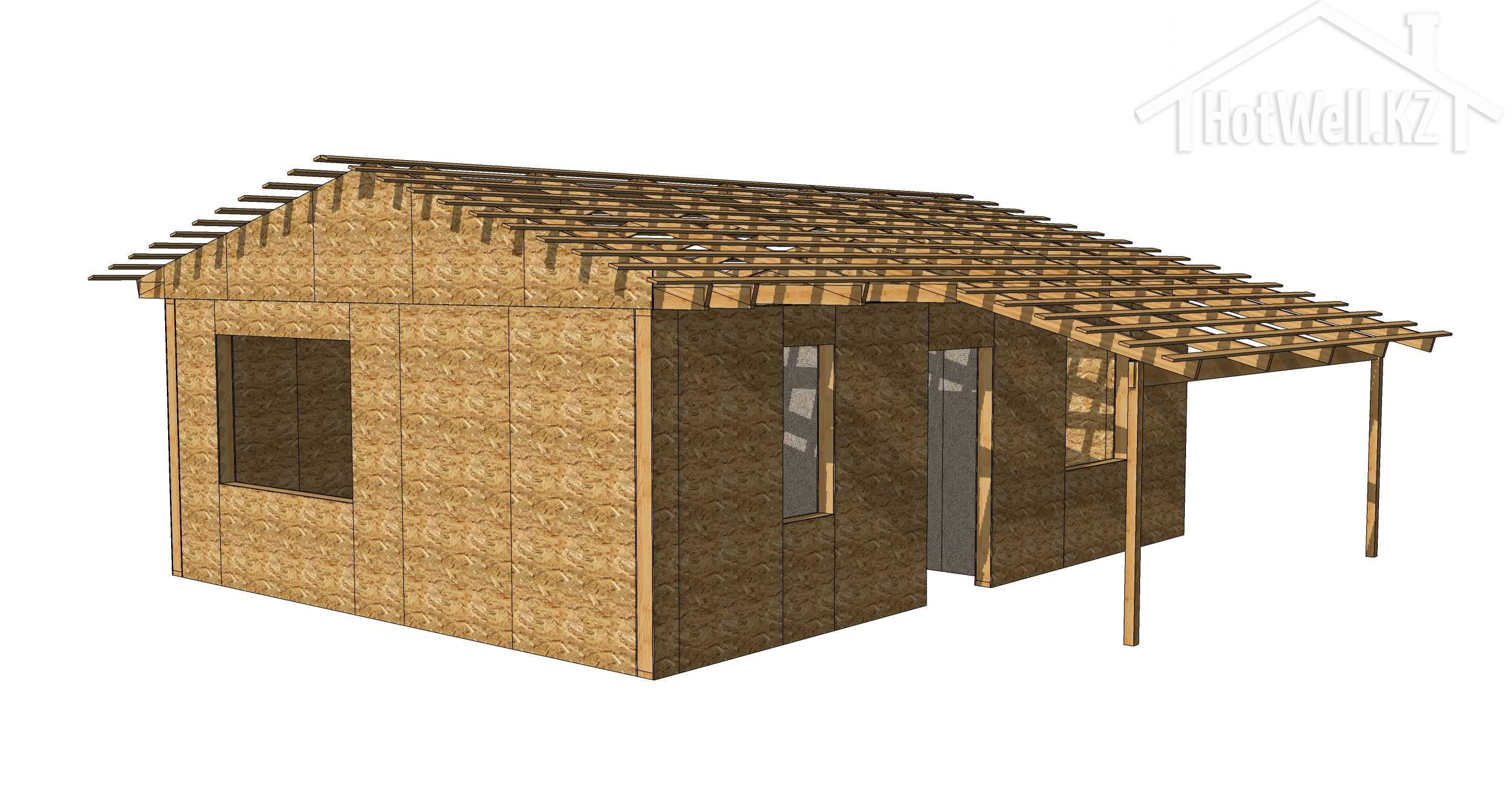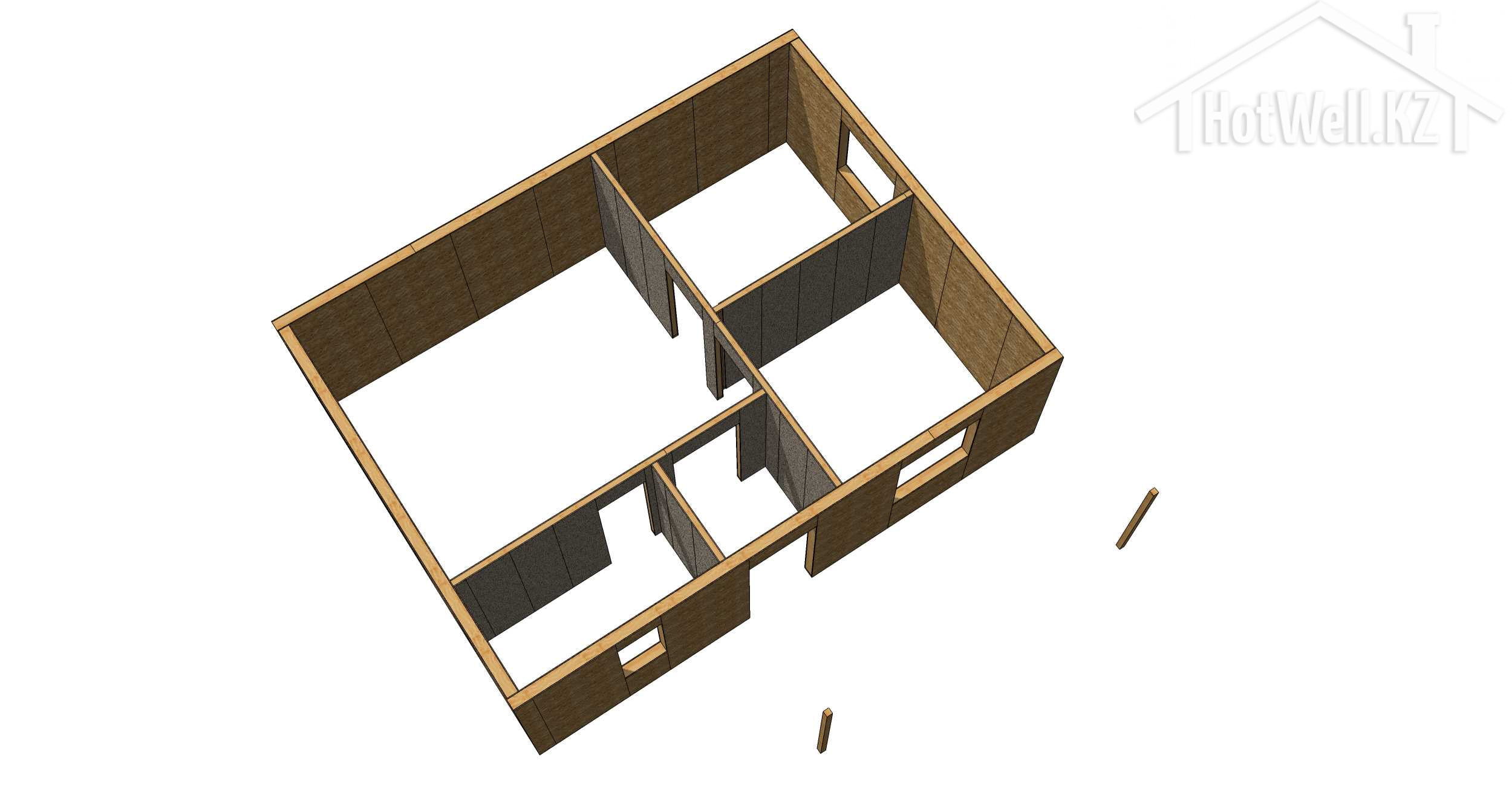 В комплект дома входит: Наружные стены из СИП панелей, инструкция (проект) для самостоятельной сборки, стропильная система крыши, обрешетка, межкомнатные перегородки + ГКЛ, шурупы, крепежные элементы. Фундамент заказчик заливает самостоятельно согластно проекта фундамента предоставленного от HotWell.KZ.