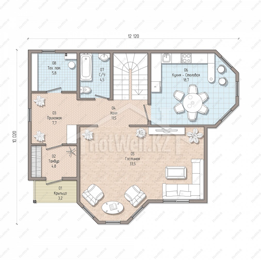 Внешние + внутренние несущие стены из СИП панелей Hotwell.KZ 158 мм (OSB-3 Толщина 9 мм, Пенополистирол ПСБ-С-20Ф)