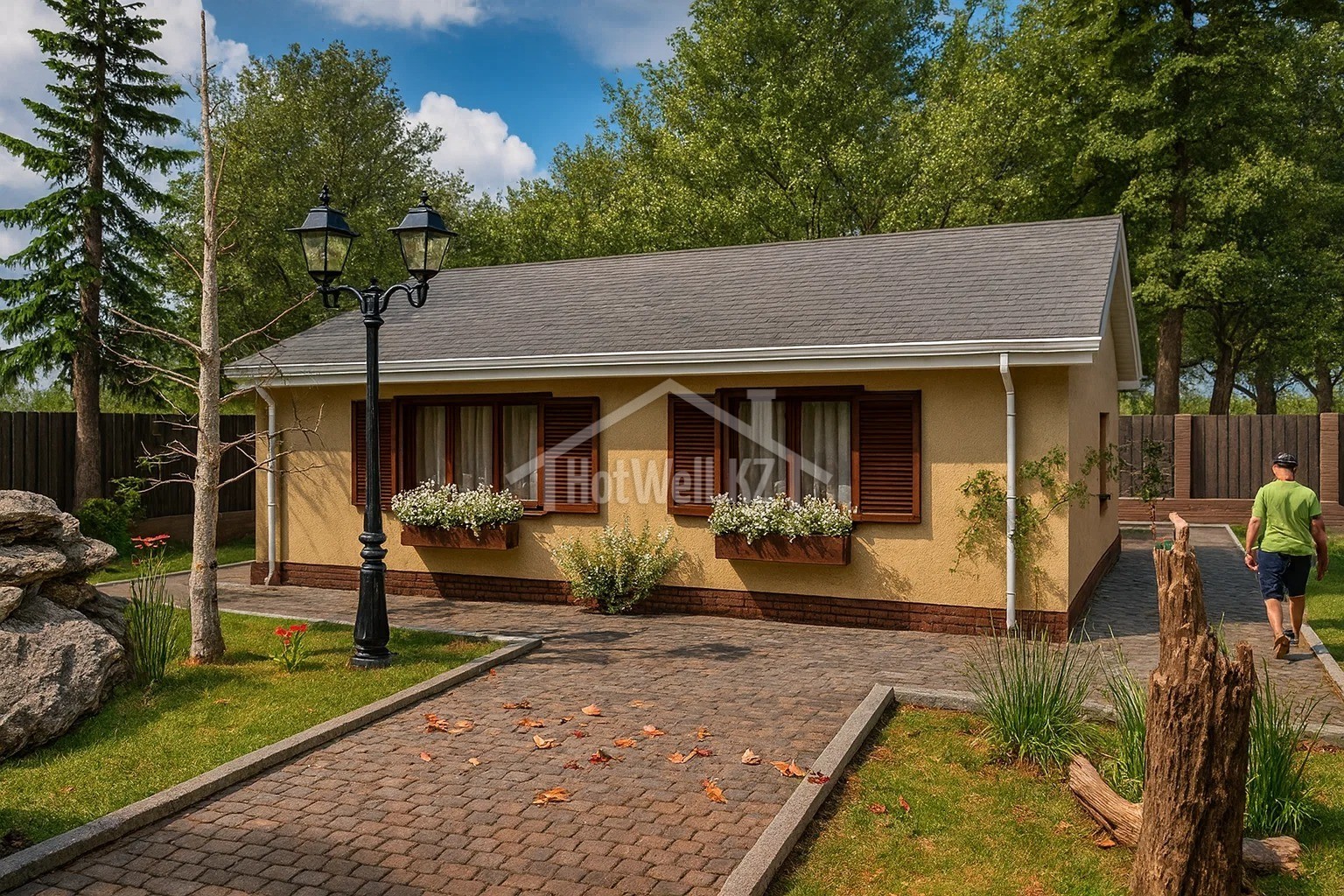 В целом, планировка этого дома площадью 71 кв. м с двумя спальнями, гостиной, прихожей и ванной комнатой спроектирована таким образом, чтобы обеспечить комфортное, функциональное и эффективное жилое пространство. Использование пространства оптимизировано, что обеспечивает комфортную жизнь.