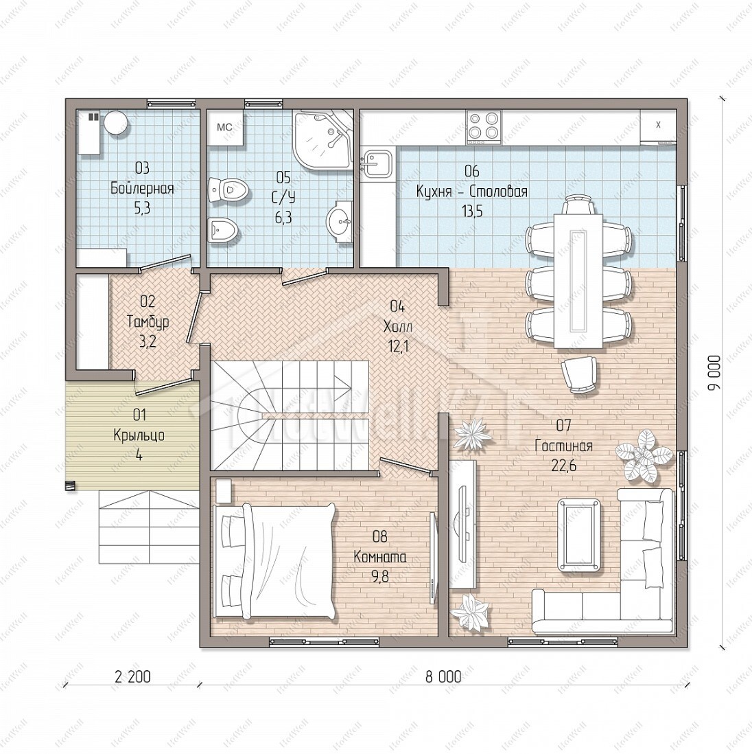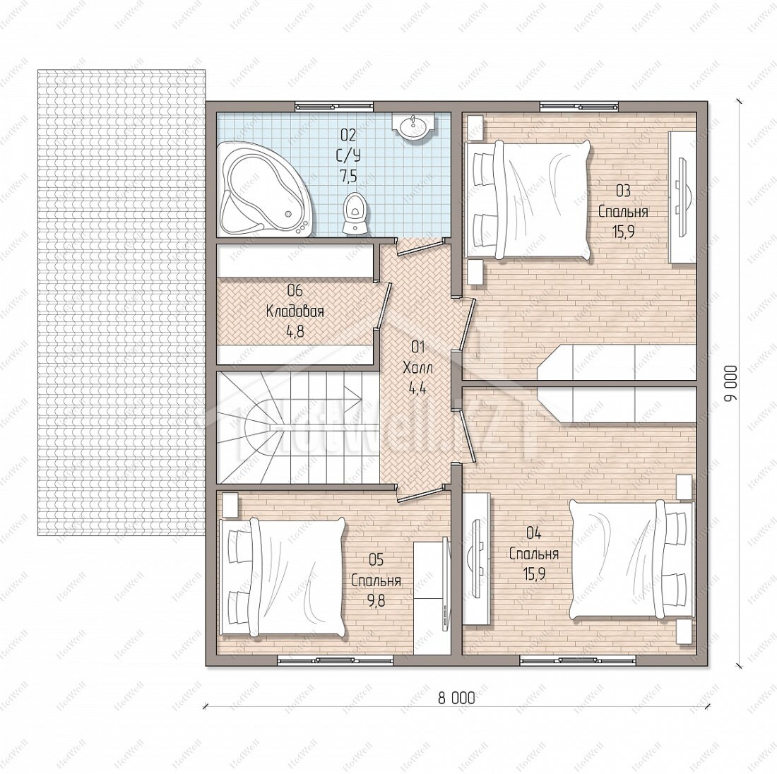 Внешние + внутренние несущие стены из СИП панелей Hotwell.KZ 158 мм (OSB-3 Толщина 9 мм, Пенополистирол ПСБ-С-20Ф)