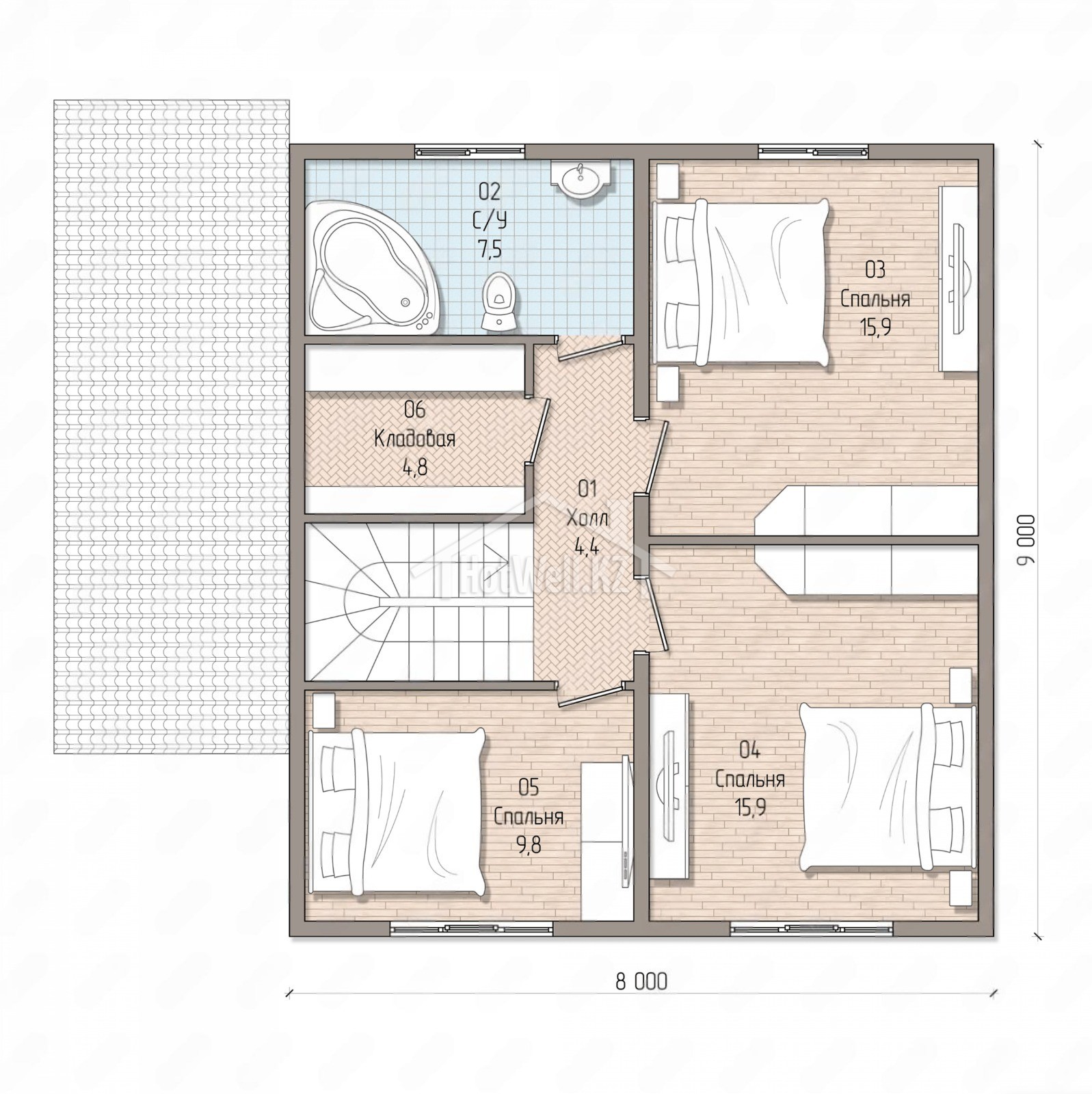 Внешние + внутренние несущие стены из СИП панелей Hotwell.KZ 158 мм (OSB-3 Толщина 9 мм, Пенополистирол ПСБ-С-20Ф)