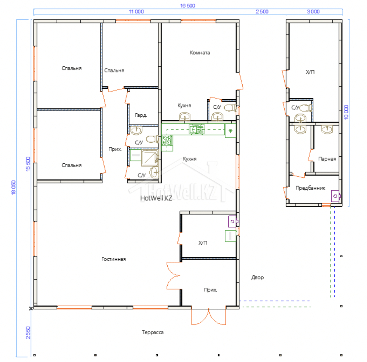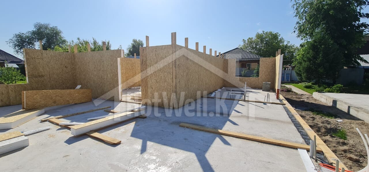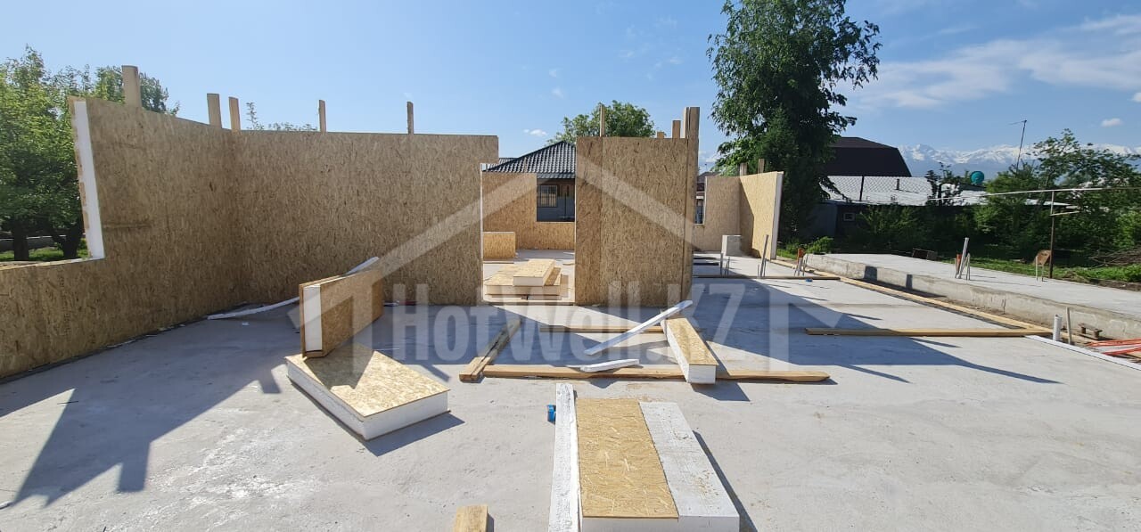 Внешние + внутренние несущие стены из СИП панелей Hotwell.KZ 158 мм (OSB-3 Толщина 9 мм, Пенополистирол ПСБ-С-20Ф)