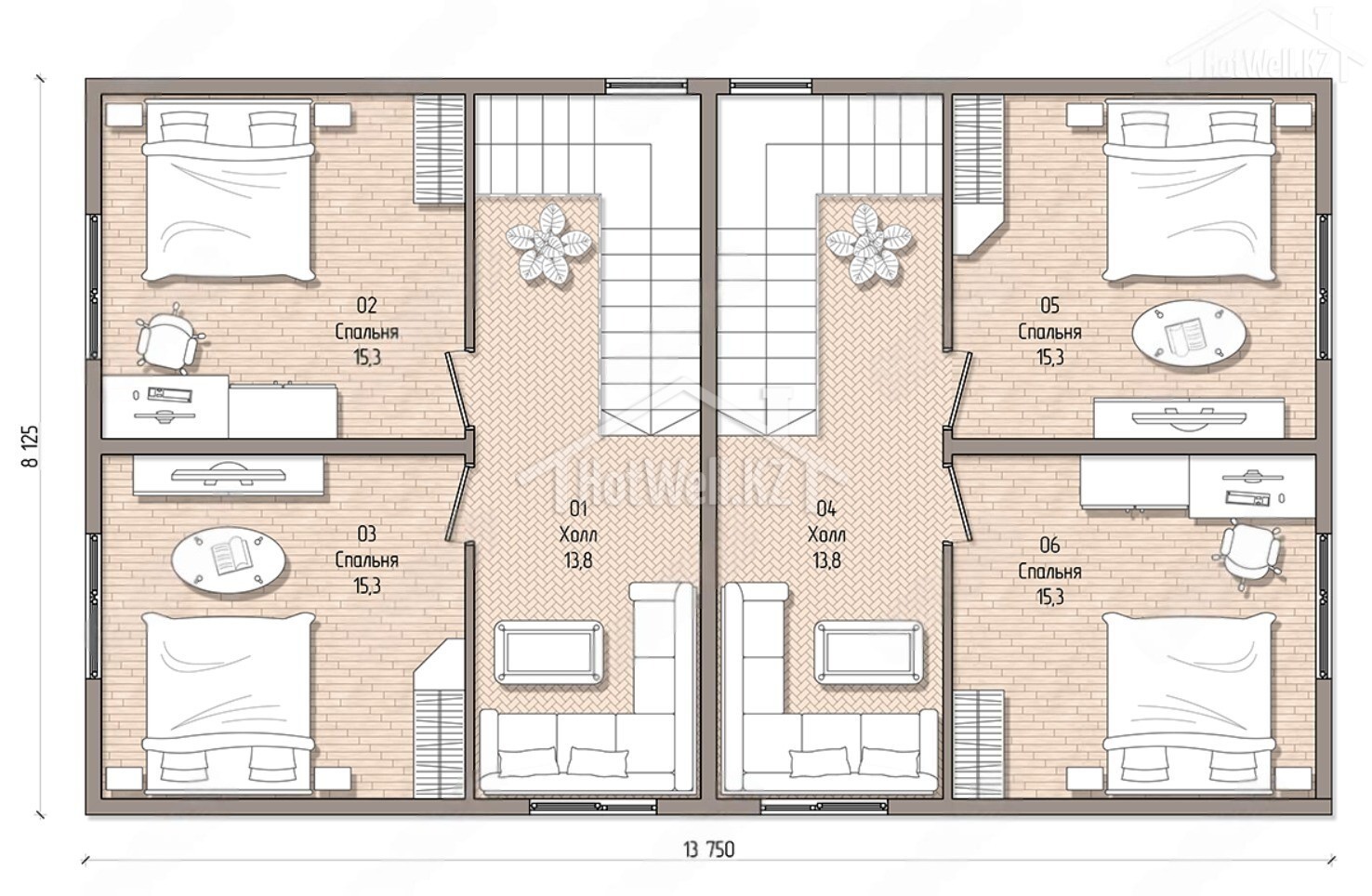 Внешние + внутренние несущие стены из СИП панелей Hotwell.KZ 158 мм (OSB-3 Толщина 9 мм, Пенополистирол ПСБ-С-20Ф)
