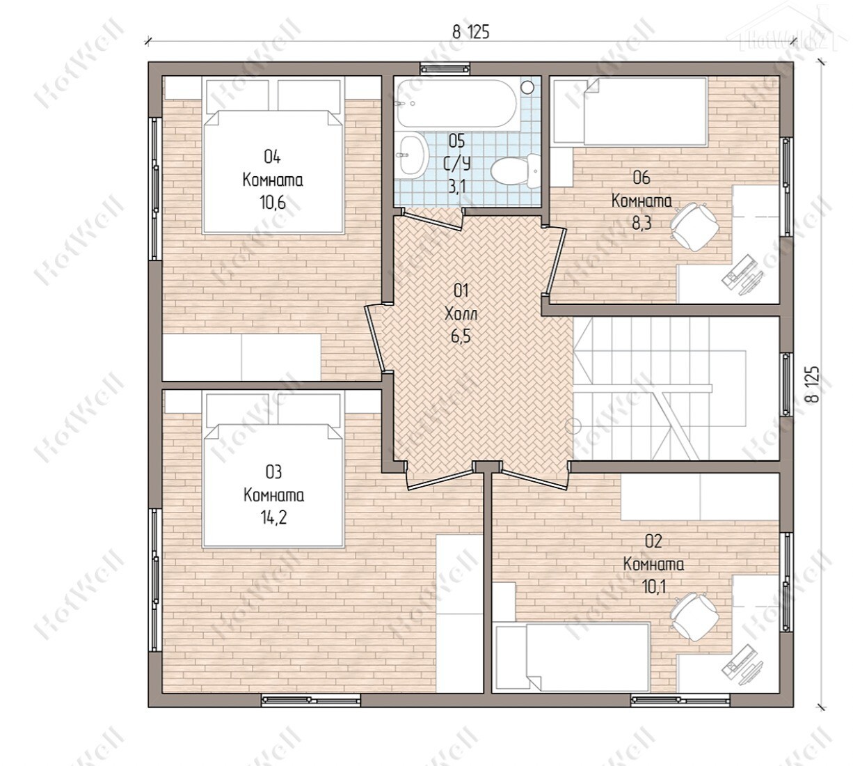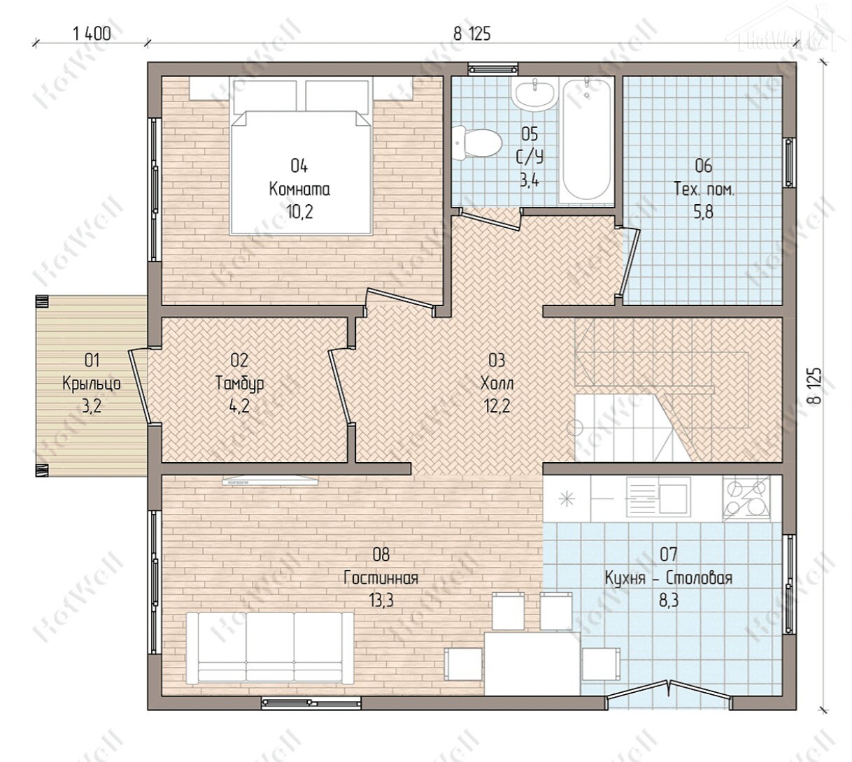 Внешние + внутренние несущие стены из СИП панелей Hotwell.KZ 158 мм (OSB-3 Толщина 9 мм, Пенополистирол ПСБ-С-20Ф)