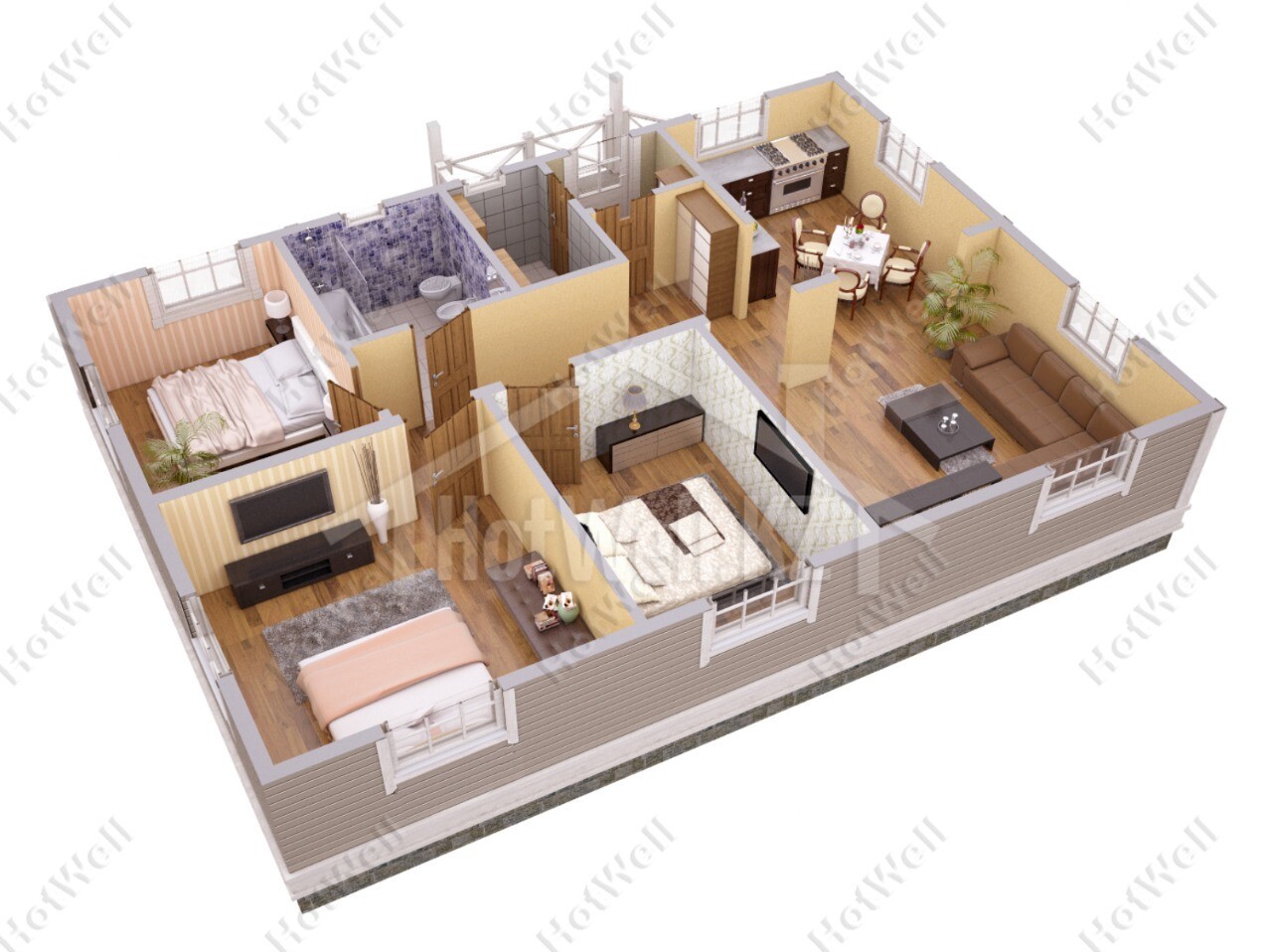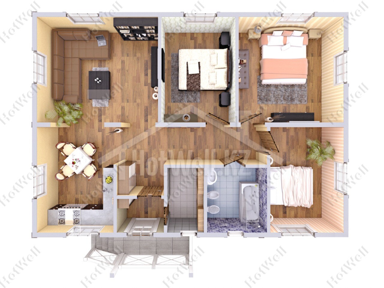 Внешние + внутренние несущие стены из СИП панелей Hotwell.KZ 158 мм (OSB-3 Толщина 9 мм, Пенополистирол ПСБ-С-20Ф)
