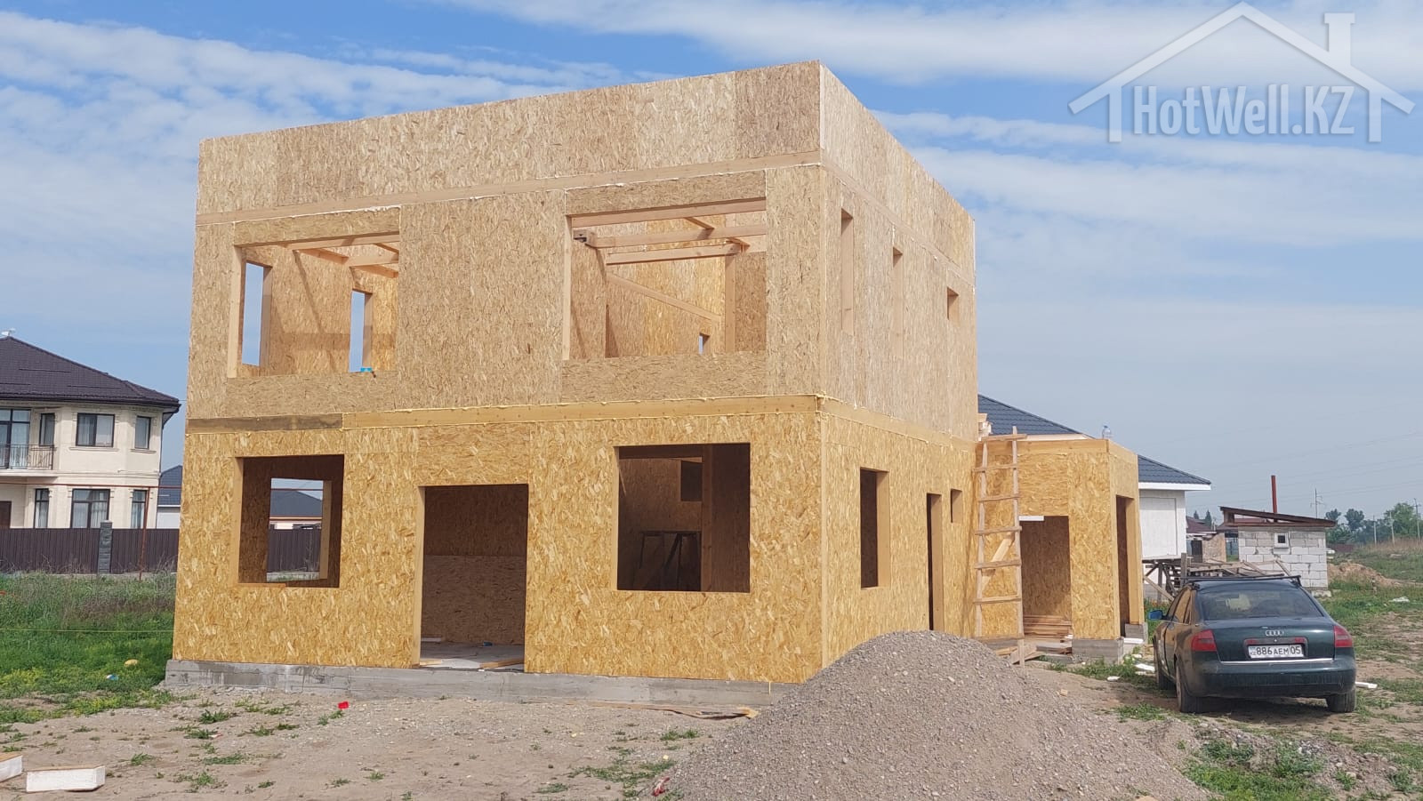 Внешние + внутренние несущие стены из СИП панелей Hotwell.KZ 158 мм (OSB-3 Толщина 9 мм, Пенополистирол ПСБ-С-20Ф)