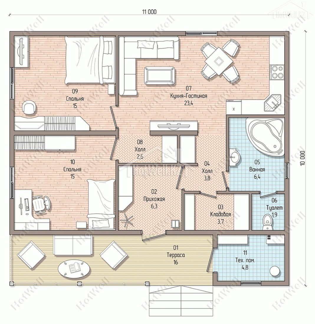 Внешние + внутренние несущие стены из СИП панелей Hotwell.KZ 158 мм (OSB-3 Толщина 9 мм, Пенополистирол ПСБ-С-20Ф)