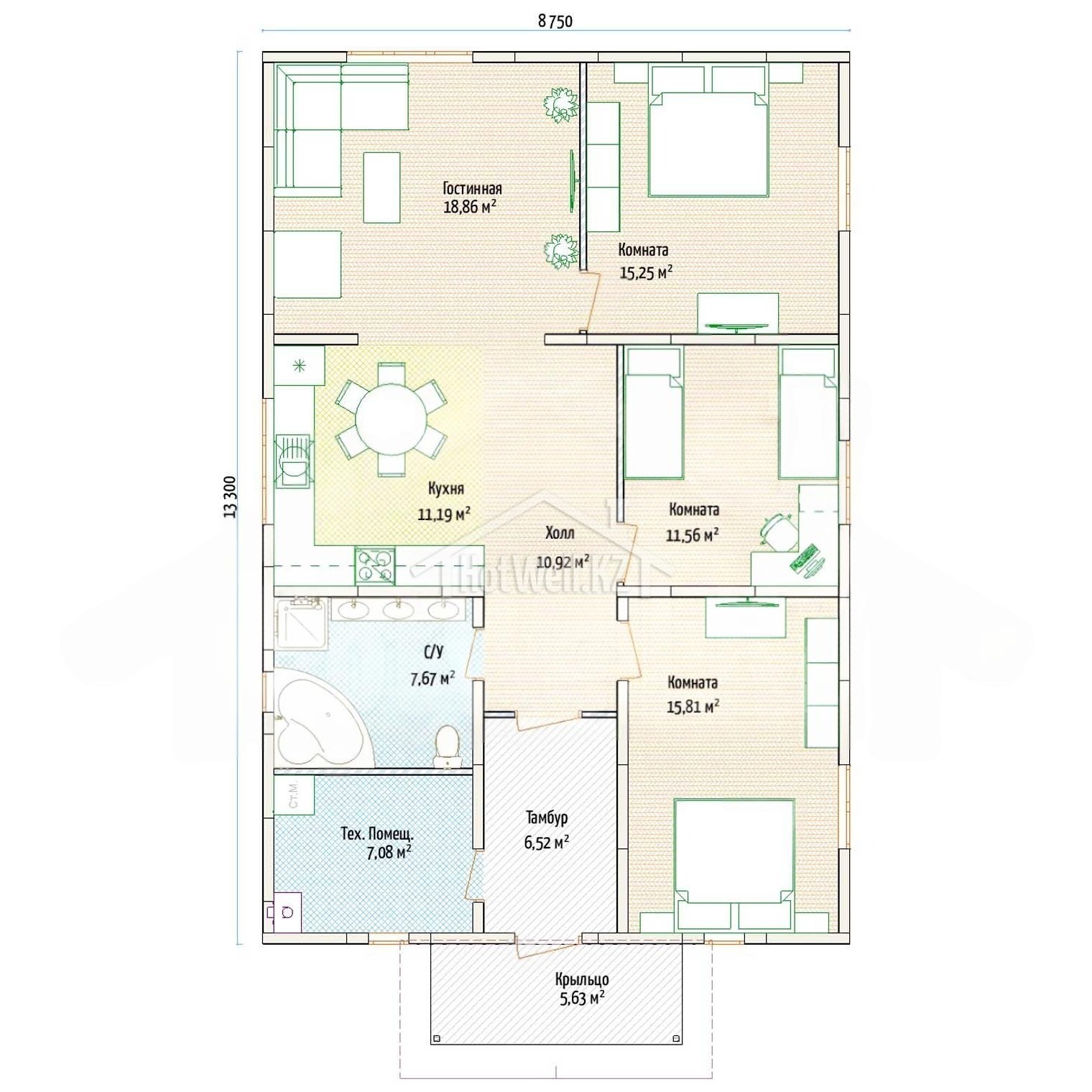 Внешние + внутренние несущие стены из СИП панелей Hotwell.KZ 158 мм (OSB-3 Толщина 9 мм, Пенополистирол ПСБ-С-20Ф)