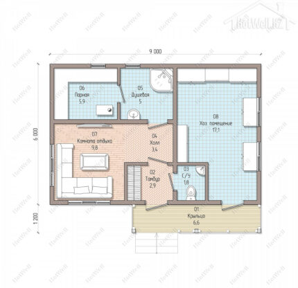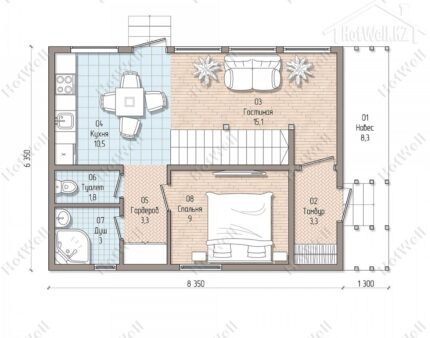 Одноэтажная баня 10 на 8 метров, общей площадью 81 м2, из СИП панелей, с сауной и бойлерной.