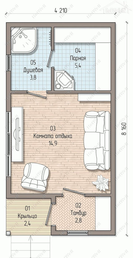 Одноэтажная баня 10 на 5 метров, общей площадью 53 м2, из СИП панелей.