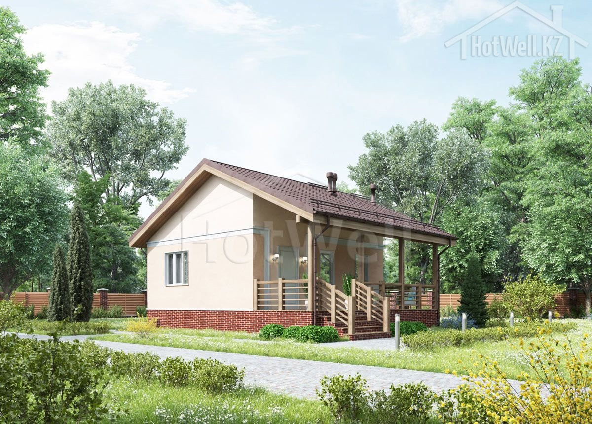 Одноэтажная баня 9 на 7 метров, общей площадью 63 м2, из СИП панелей, с террасой.