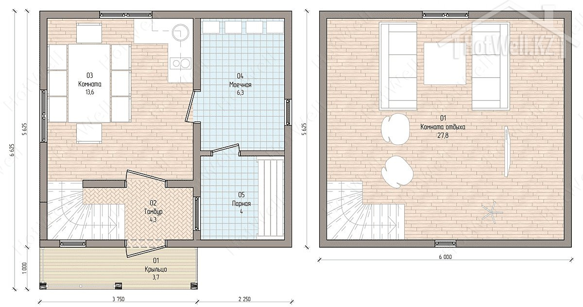 Баня с мансардой 7 на 6 метров, общей площадью 71 м2, из СИП панелей.