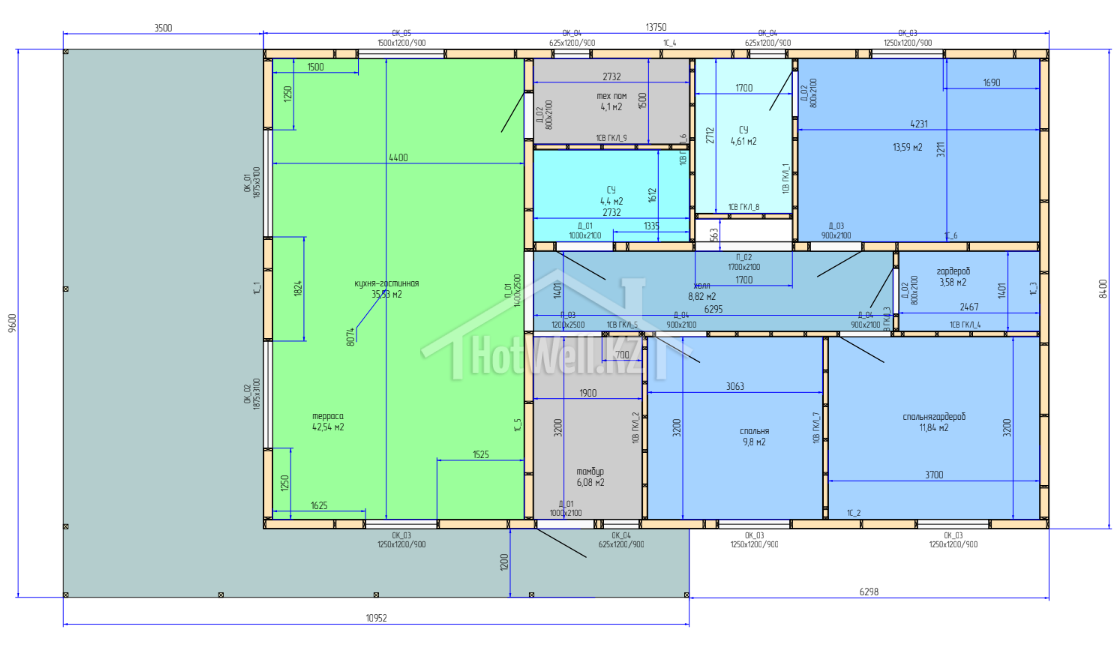 Проект «А-115», выполненный для заказчика Азамата, — это современный одноэтажный дом общей площадью 115 м², рассчитанный на удобное и комфортное проживание.