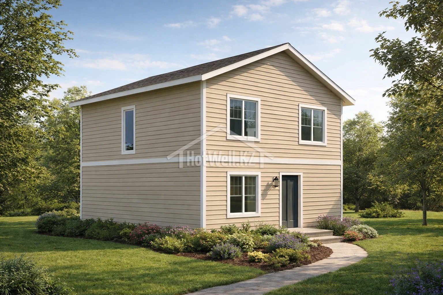 Проект дома «А-145» — двухэтажный дом 145 м² с двускатной крышей