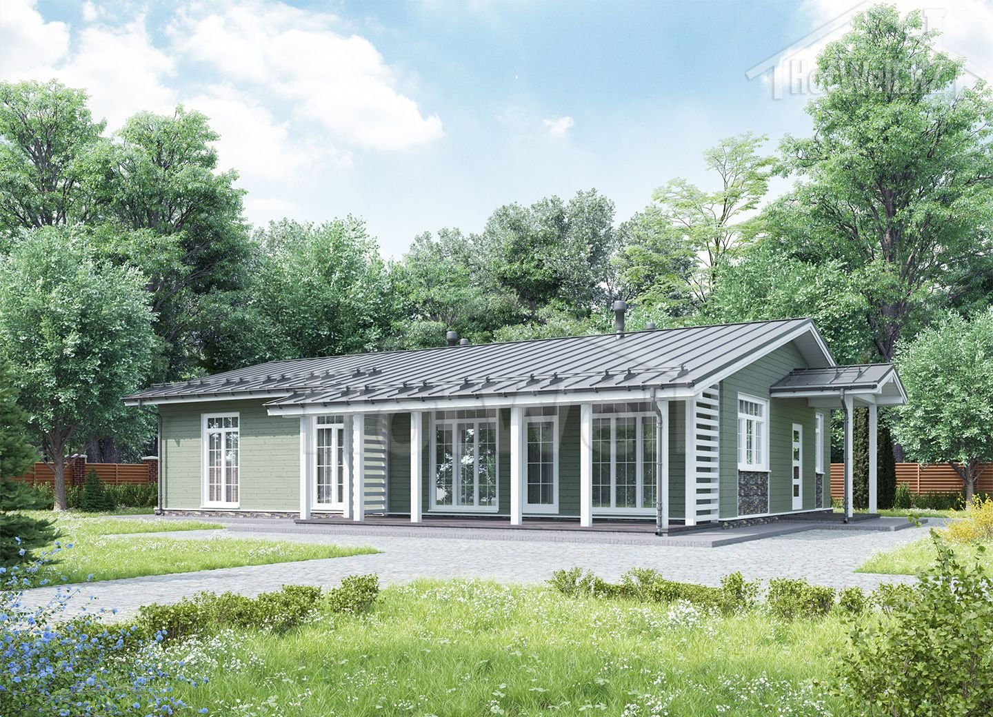 Одноэтажный дом общей площадью 179 м2, из СИП панелей, с бойлерной, террасой и спальней на первом этаже.