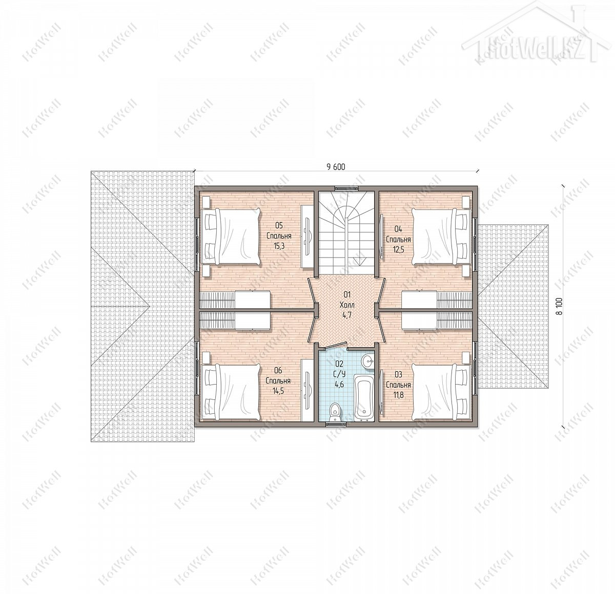 Данный проект дома основан на основе популярного проекта А-100, разница в том что у данного проекта вынесено за пределы дома тех помещение с тамбуром. Проект имеет большую гостинную на первом этаже 22 м2, отдельную кухню. Второй этаж имеет три спальни и сан узел. Тип крыши двускатная. Очень хороший и популярный проект.