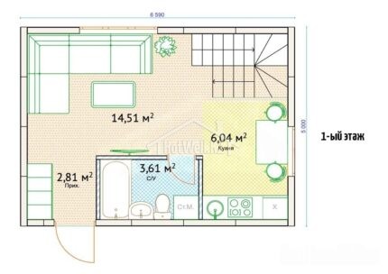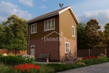 Дом с мансардой 16 на 12 метров, общей площадью 340 м2, из СИП панелей, с бойлерной, гаражом, террасой, балконом и спальней на первом этаже.