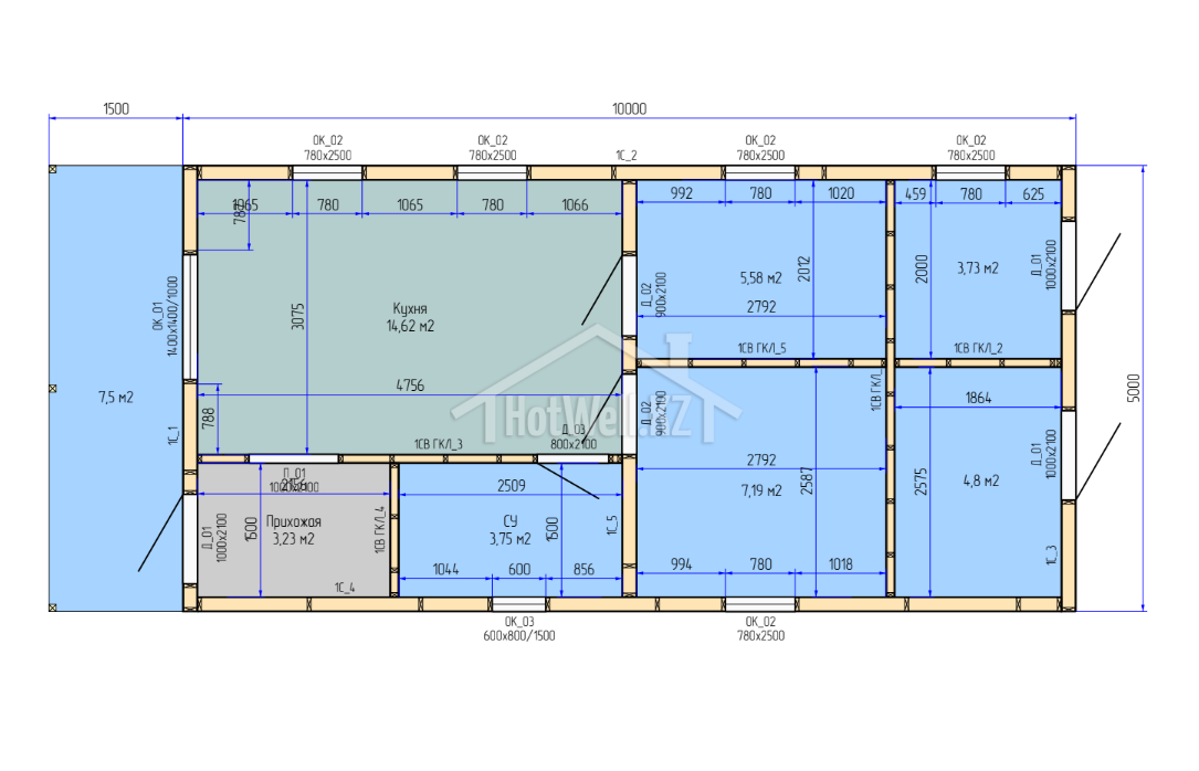 Проект дома «А-50» — одноэтажный дом 50 м²