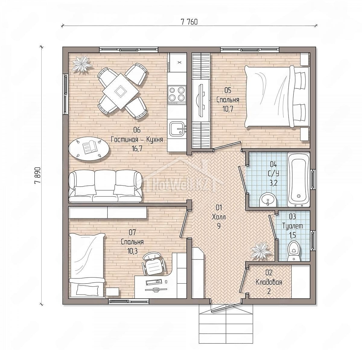Внешние + внутренние несущие стены из СИП панелей Hotwell.KZ 158 мм (OSB-3 Толщина 9 мм, Пенополистирол ПСБ-С-20Ф)