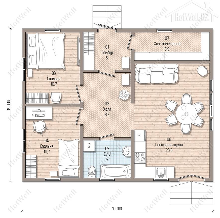 Внешние + внутренние несущие стены из СИП панелей Hotwell.KZ 158 мм (OSB-3 Толщина 9 мм, Пенополистирол ПСБ-С-20Ф)