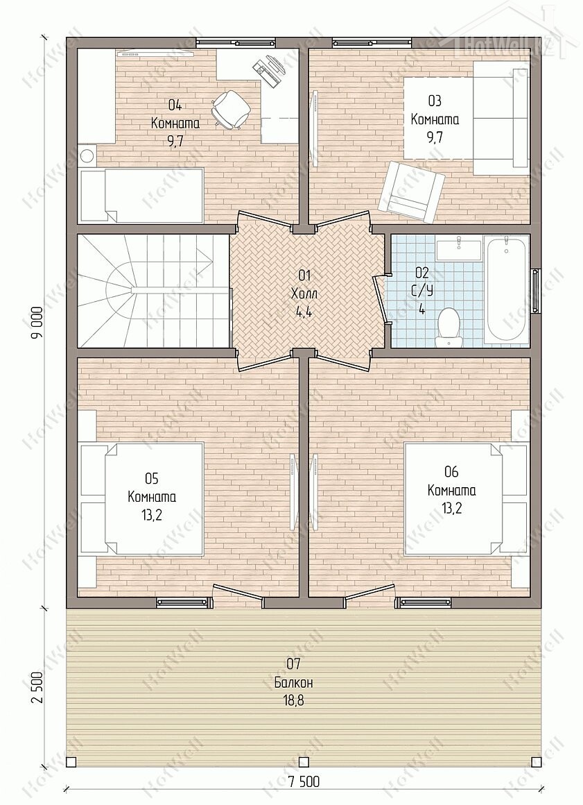 Внешние + внутренние несущие стены из СИП панелей Hotwell.KZ 158 мм (OSB-3 Толщина 9 мм, Пенополистирол ПСБ-С-20Ф)