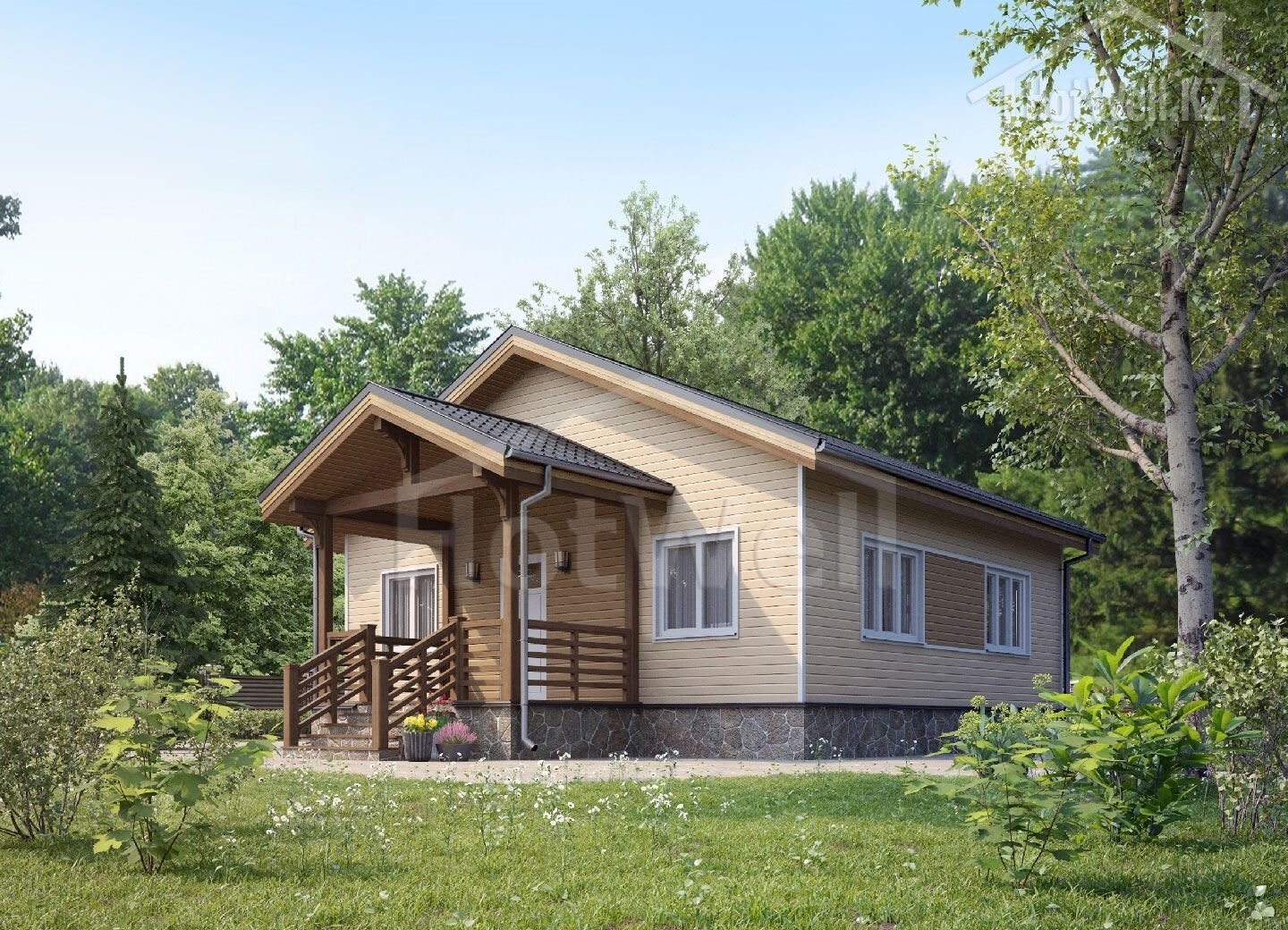 Одноэтажный дом 11 на 9 метров, общей площадью 92 м2, из СИП панелей, с бойлерной и спальней на первом этаже.