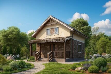 Дом с мансардой 13 на 11 метров, общей площадью 217 м2, из СИП панелей, с бойлерной, террасой, балконом, вторым светом и спальней на первом этаже.