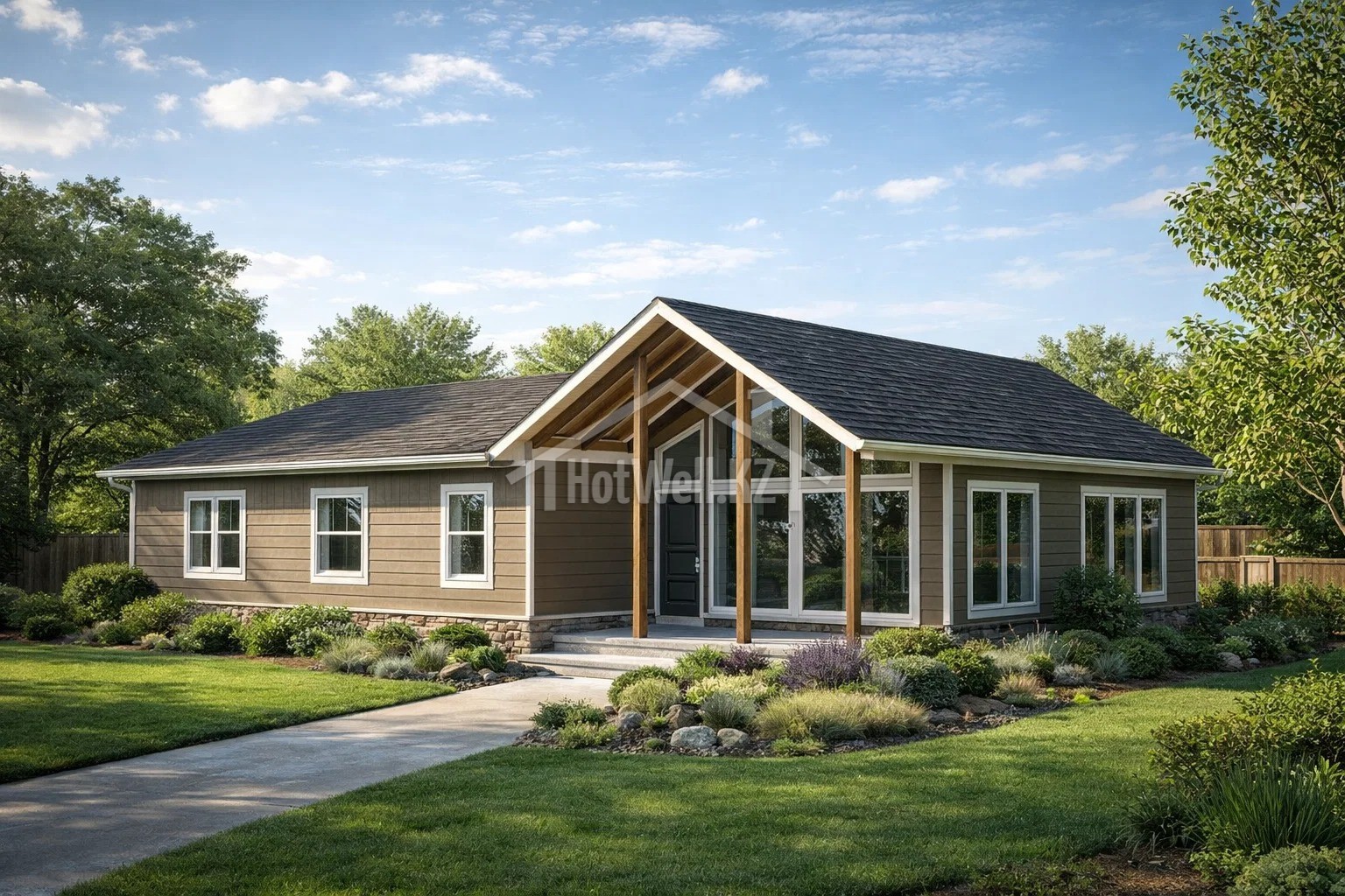 Проект дома «Д-230» — одноэтажный дом 230 м² с двускатной крышей