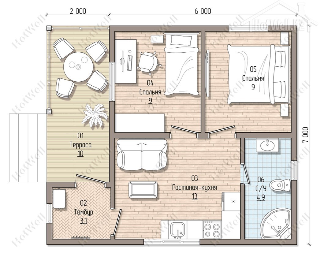 Внешние + внутренние несущие стены из СИП панелей Hotwell.KZ 158 мм (OSB-3 Толщина 9 мм, Пенополистирол ПСБ-С-20Ф)