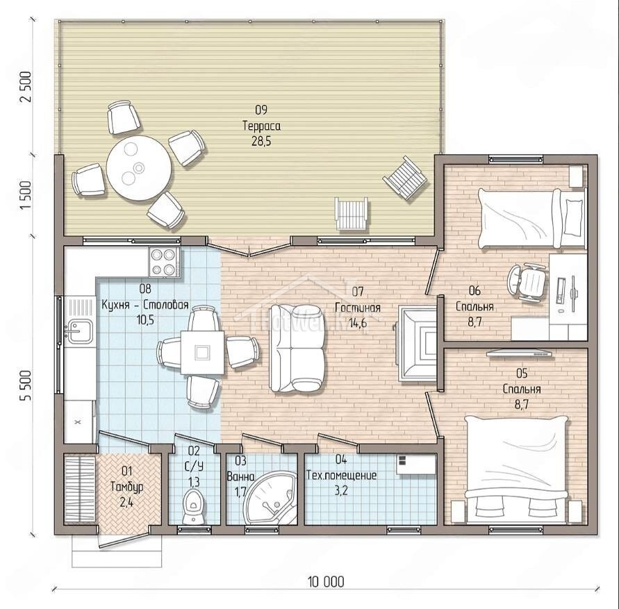 Внешние + внутренние несущие стены из СИП панелей Hotwell.KZ 158 мм (OSB-3 Толщина 9 мм, Пенополистирол ПСБ-С-20Ф)