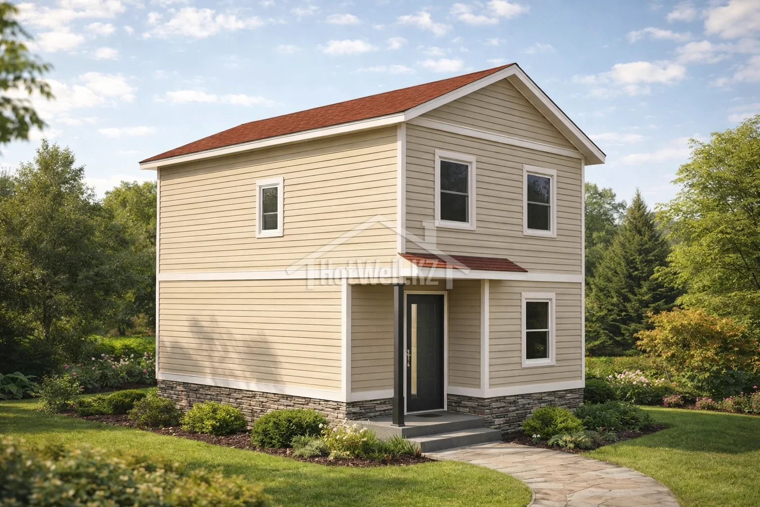 Проект дома «Е-108» — двухэтажный дом 108 м² с двускатной крышей