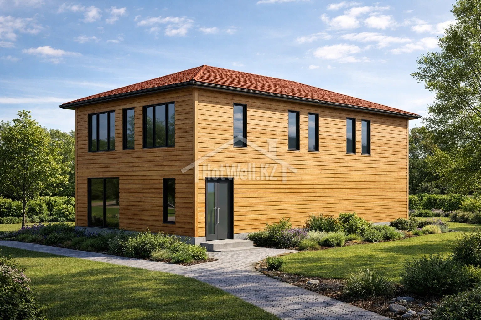 Проект дома «Ф-185» — двухэтажный дом 185 м² с четырёхскатной крышей