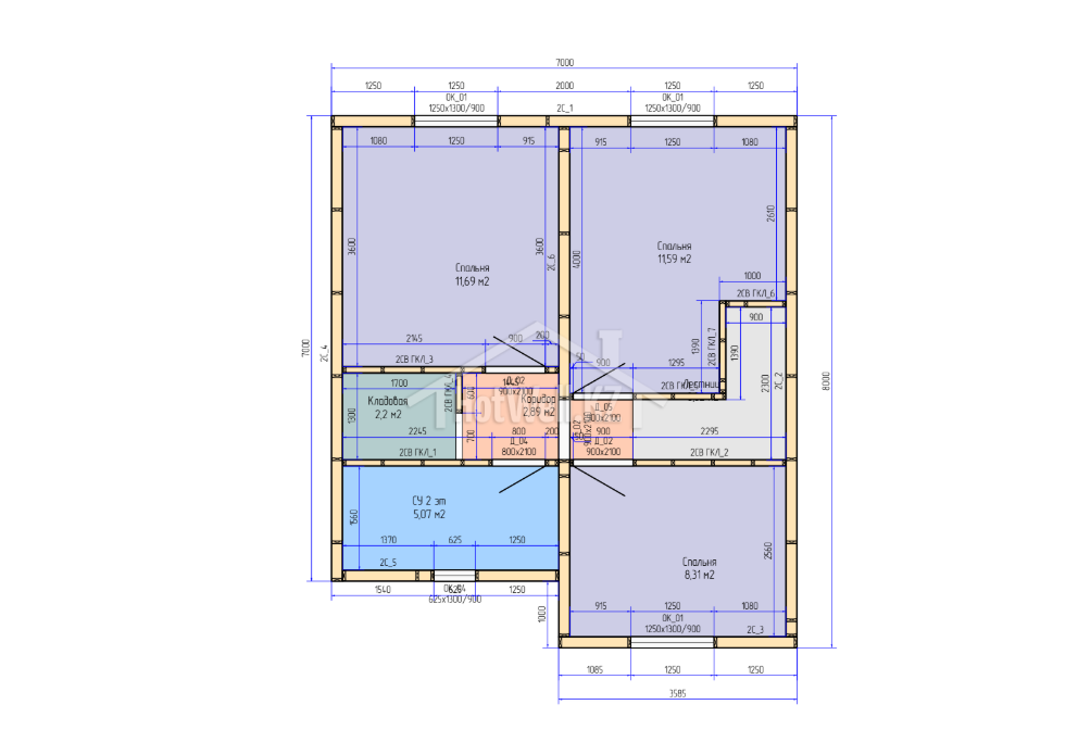 Высота стен на первом этаже — 2,8 метра, что делает комнаты более светлыми и просторными. На втором этаже высота стен составляет 2,5 метра, благодаря чему помещения остаются уютными и удобными для отдыха.