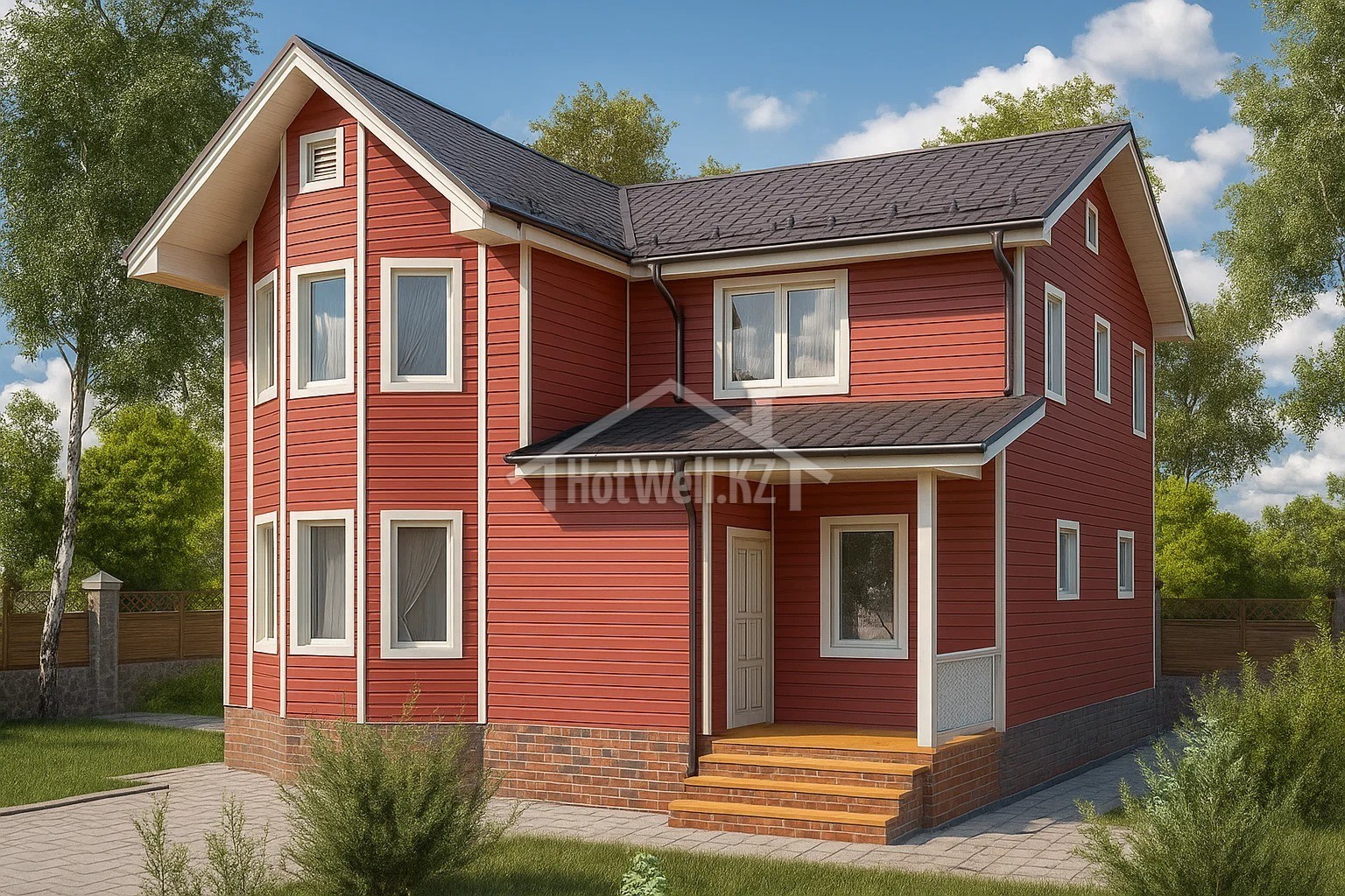 Двухэтажный дом 12 на 8 метров, общей площадью 170 м2, из СИП панелей, с бойлерной, эркером и спальней на первом этаже.